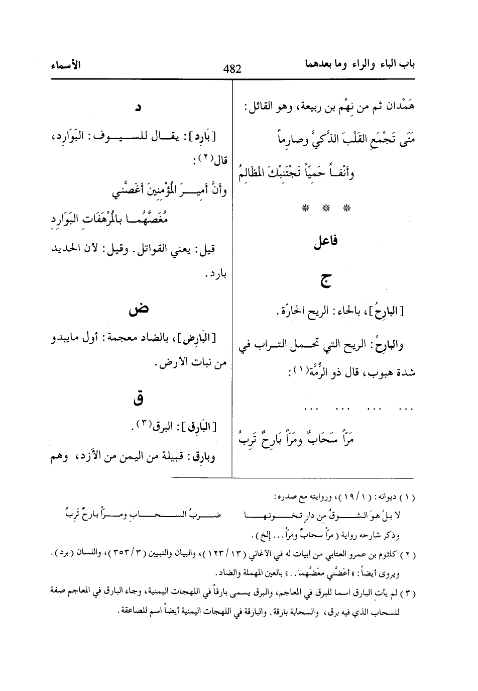 [بَارِد]: يقال للسيوف: البَوَارِد، قال «2»:
