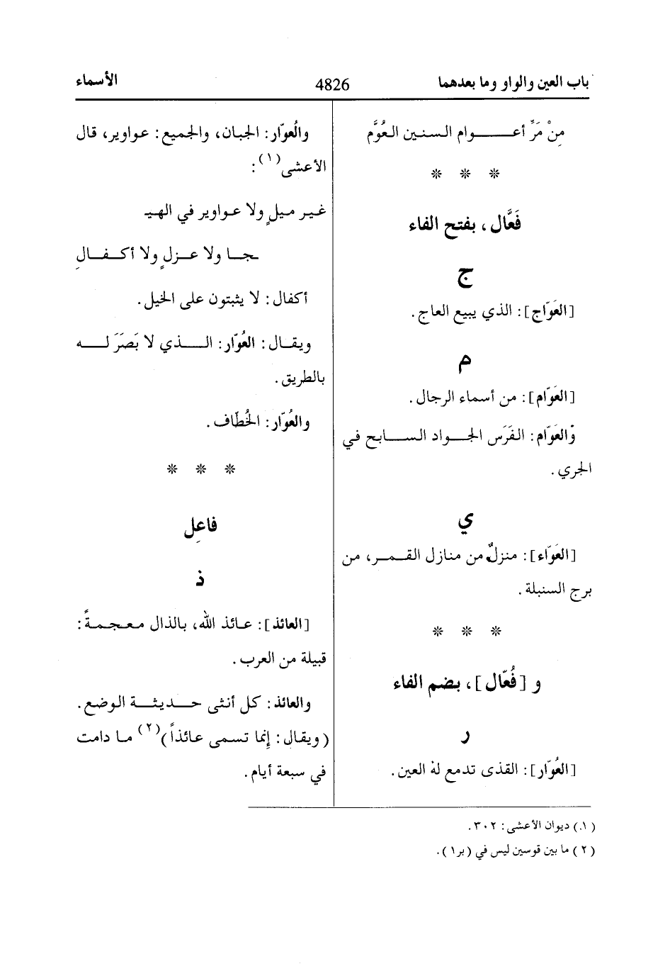 والعُوّار: الجبان، والجميع: عواوير، قال الأعشى «1»: