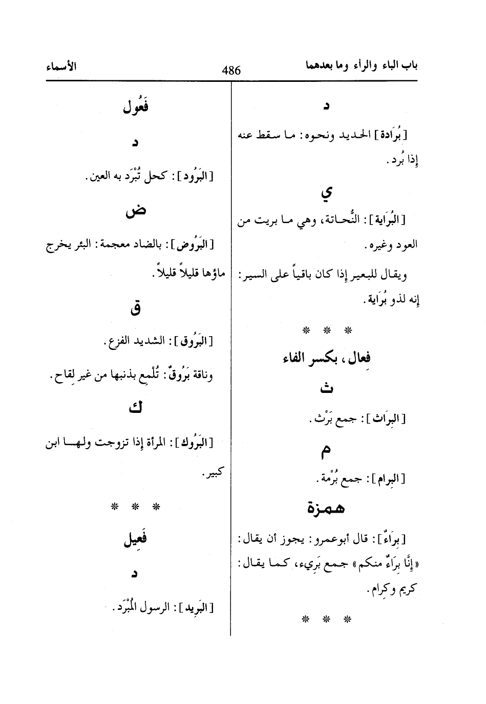 [بِرَاءٌ]: قال أبو عمرو: يجوز أن يقال: