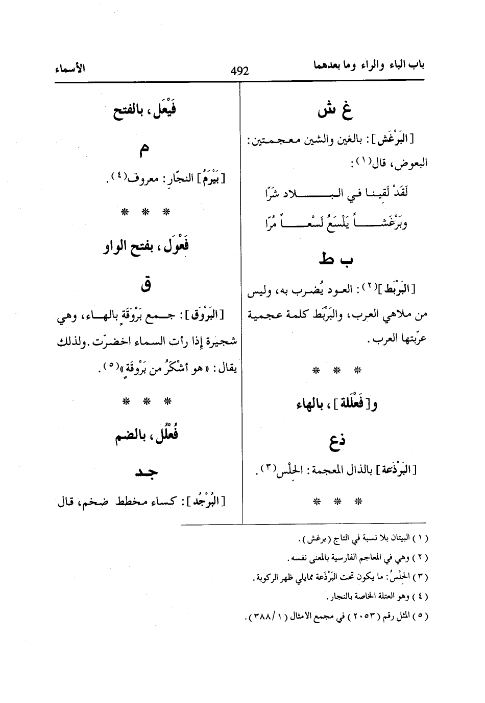 [البَرْوَق]: جمع بَرْوَقَةٍ بالهاء، وهي شجيرة إِذا رأت السماء اخضرّت. ولذلك يقال: «هو أشْكَرُ من بَرْوقَةٍ» «5».