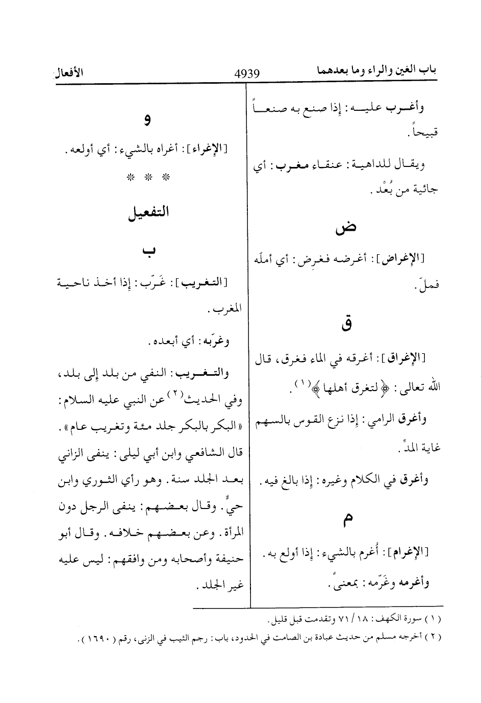 [الإغراق]: أغرقه في الماء فغرق، قال اللّاه تعالى: لِتُغْرِقَ أَهْلَهاا «1».