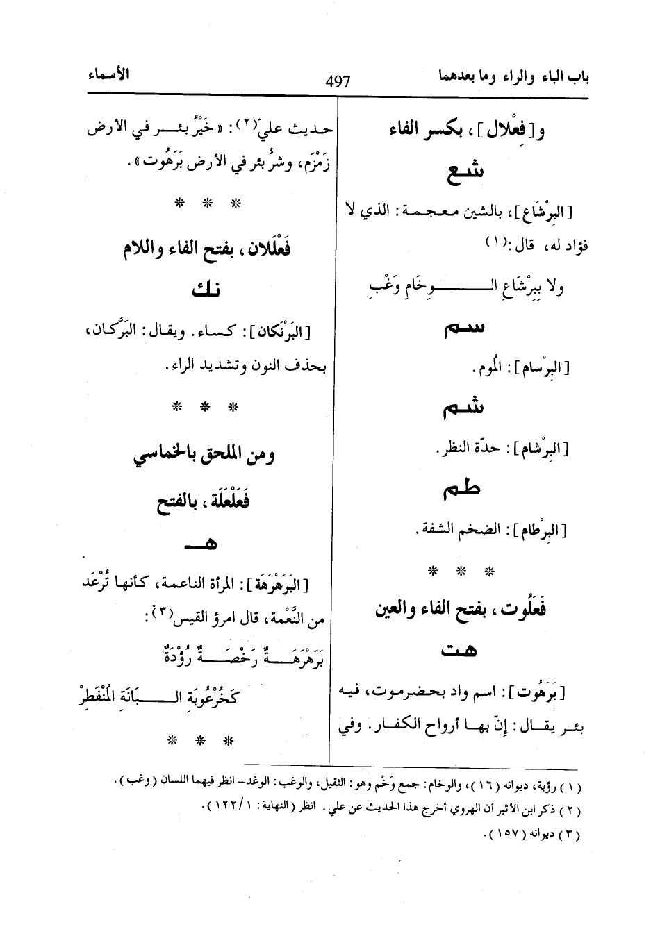 وفي حديث عليّ «2»: «خَيْرُ بئر في الأرض زَمْزَم، وشرُّ بئر في الأرض بَرَهُوت».