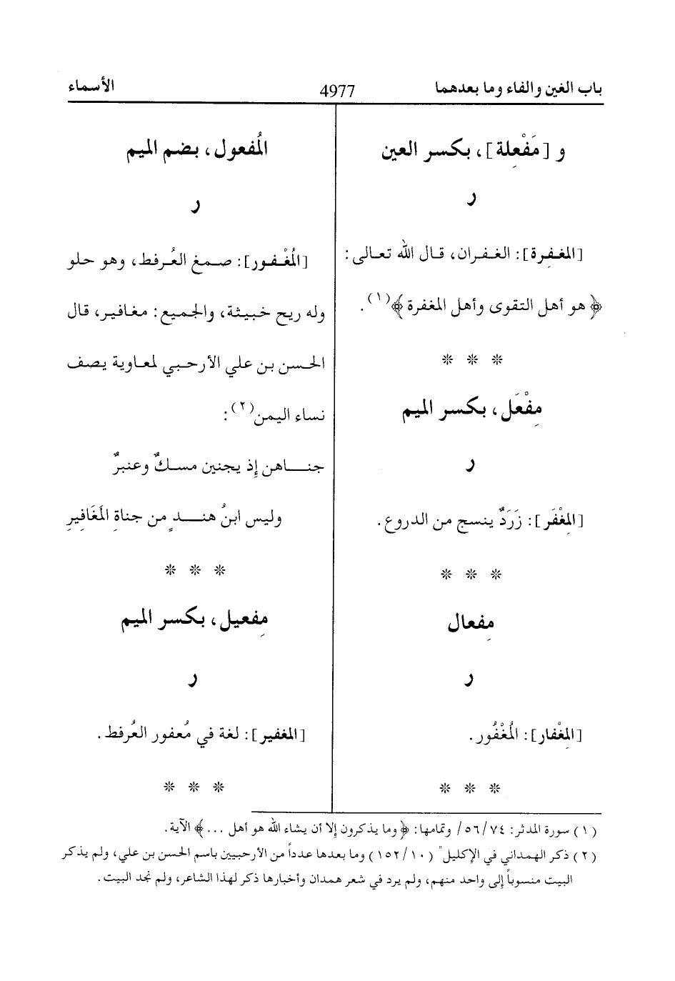 [المُغْفور]: صمغ العُرفط، وهو حلو وله ريح خبيثة، والجميع: مغافير، قال الحسن بن علي الأرحبي لمعاوية يصف نساء اليمن «2»: