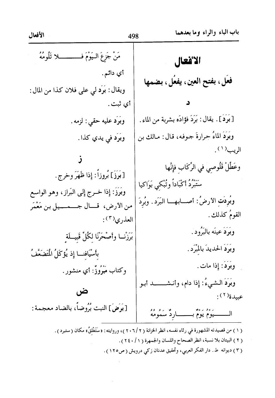 وبَرَدَ الشيءُ: إِذا دام، وأنشد أبو عبيدة «2»: