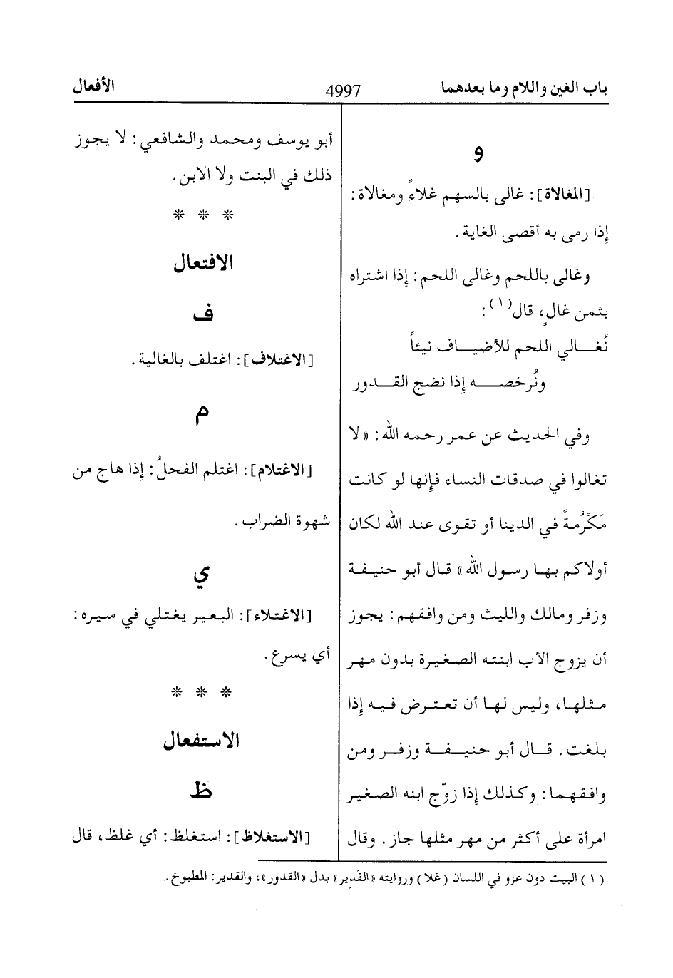وغالى باللحم وغالى اللحم: إذا اشتراه بثمن غالٍ، قال «1»: