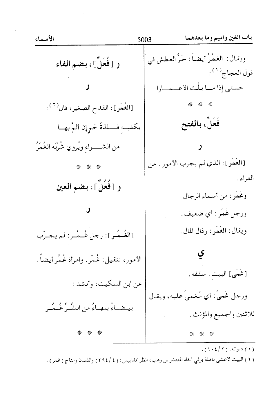 (2) البيت لأعشى باهلة يرثي أخاه المنتشر بن وهب، انظر المقاييس: (4/ 394) واللسان والتاج (غمر).