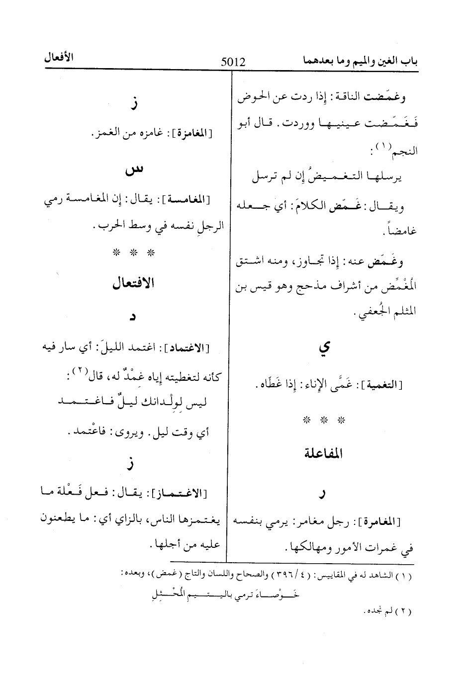 (1) الشاهد له في المقاييس: (4/ 396) والصحاح واللسان والتاج (غمض)، وبعده: