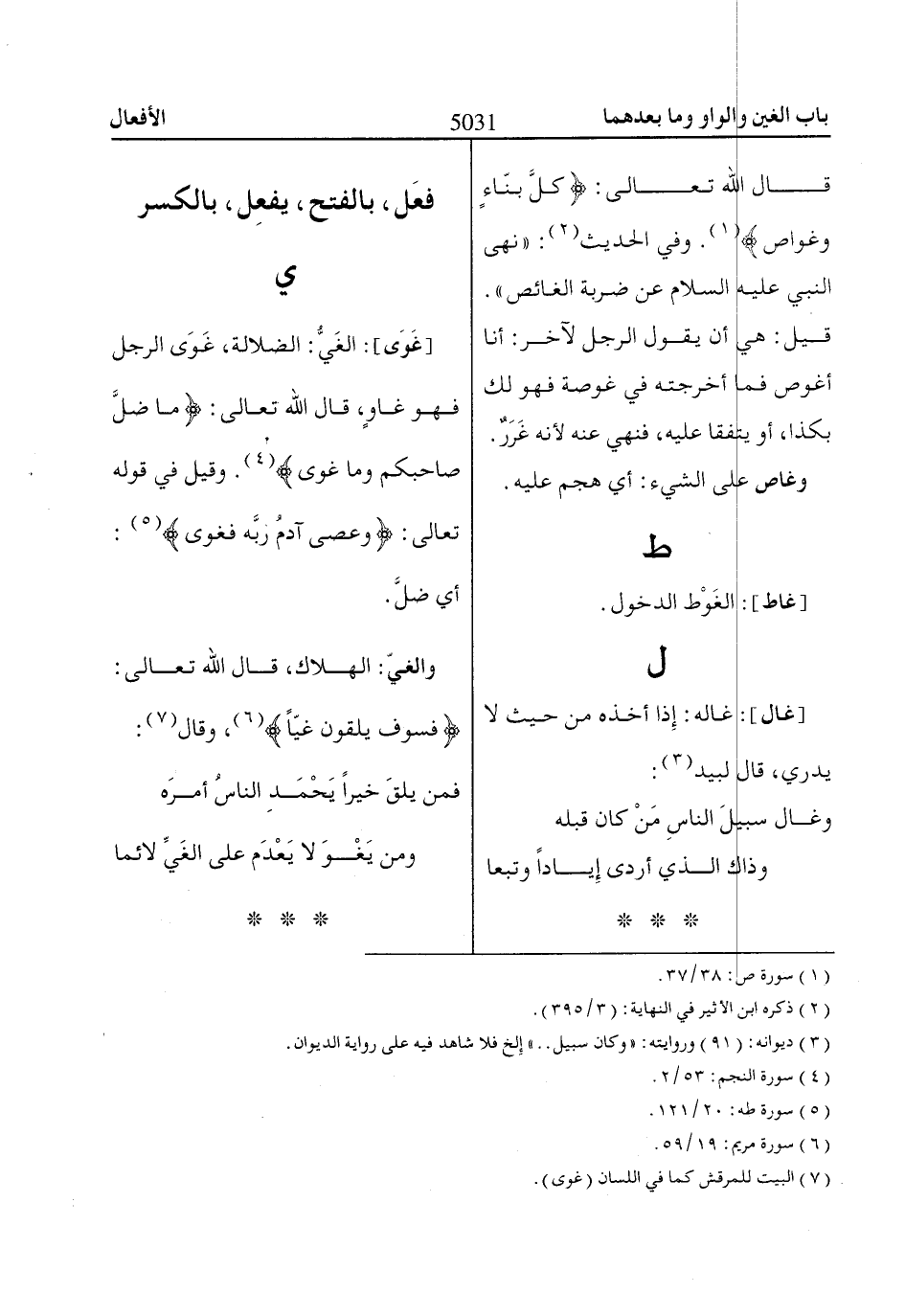 [غَوَى]: الغَيُّ: الضلالة، غَوَى الرجل فهو غاوٍ، قال اللّاه تعالى: ماا ضَلَّ صااحِبُكُمْ وَماا غَوى «4». وقيل في قوله تعالى: وَعَصى آدَمُ رَبَّهُ فَغَوى «5»: