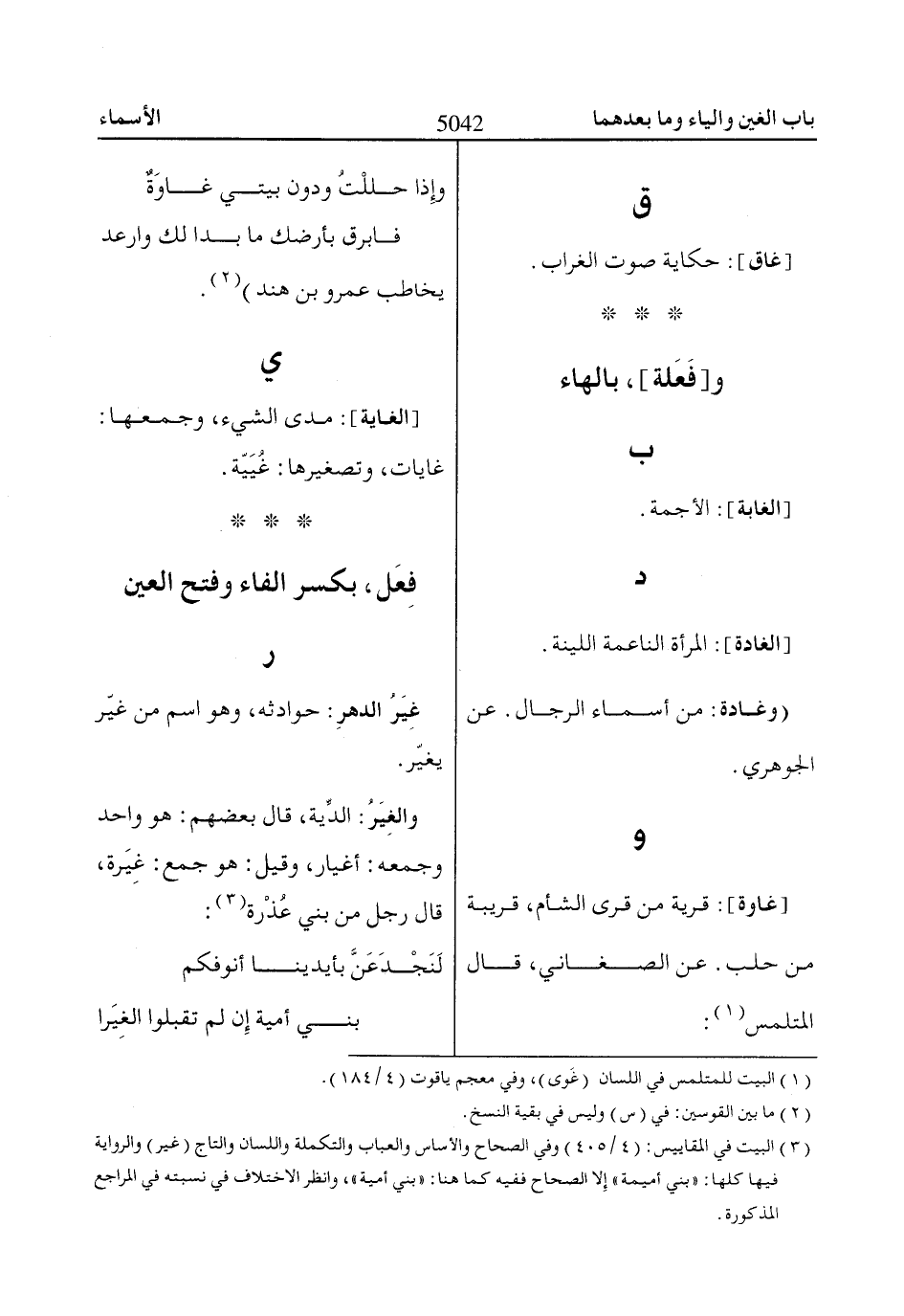 (3) البيت في المقاييس: (4/ 405) وفي الصحاح والأساس والعباب والتكملة واللسان والتاج (غير) والرواية فيها كلها: