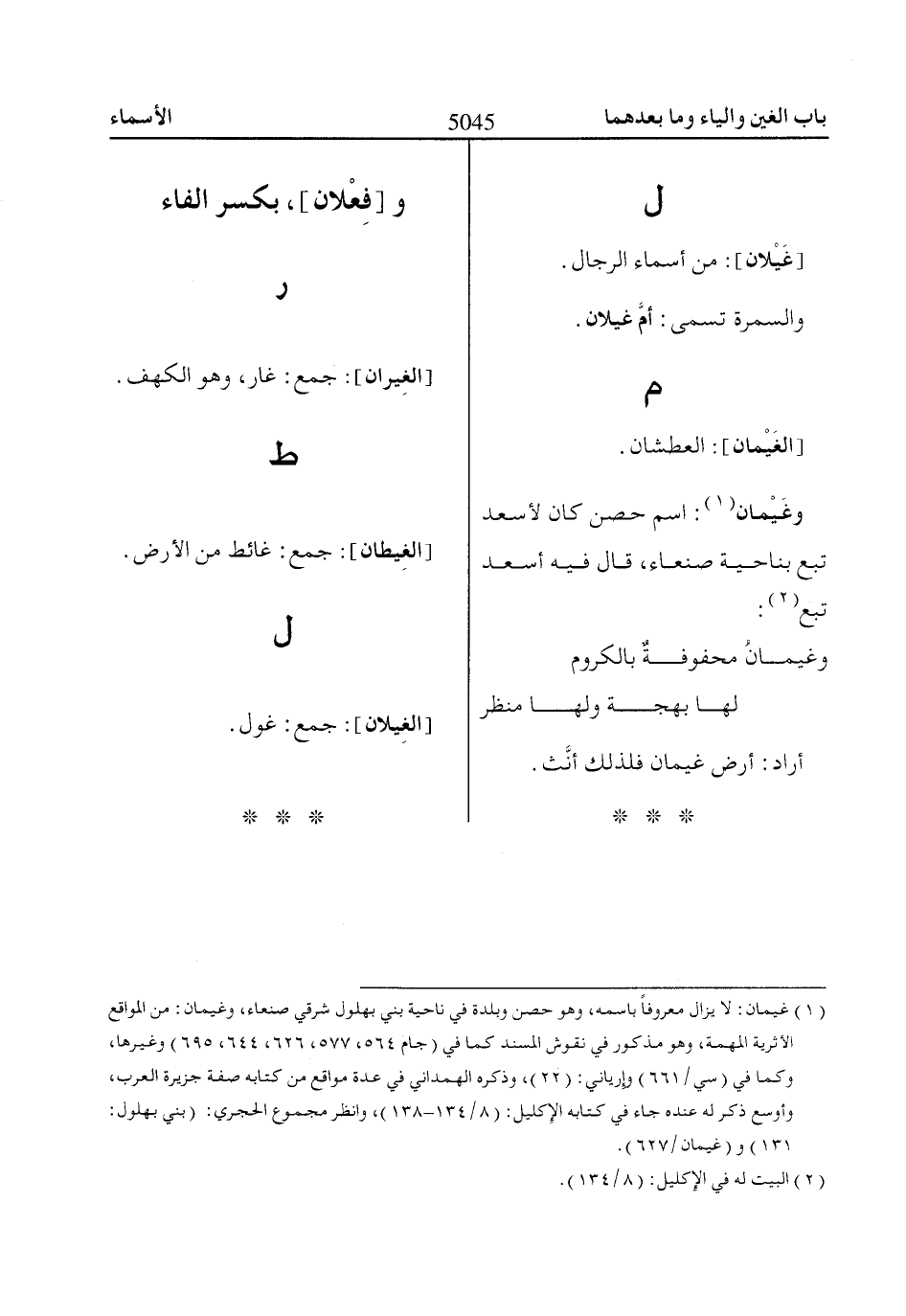 (1) غيمان: لا يزال معروفا باسمه، وهو حصن وبلدة في ناحية بني بهلول شرقي صنعاء، وغيمان: من المواقع الأثرية المهمة، وهو مذكور في نقوش المسند كما في (جام 564، 577، 626، 644، 695) وغيرها، وكما في (سي/ 661) وإرياني: (22)، وذكره الهمداني في عدة مواقع من كتابه صفة جزيرة العرب، وأوسع ذكر له عنده جاء في كتابه الإكليل: (8/ 134 - 138)، وانظر مجموع الحجري: (بني بهلول: