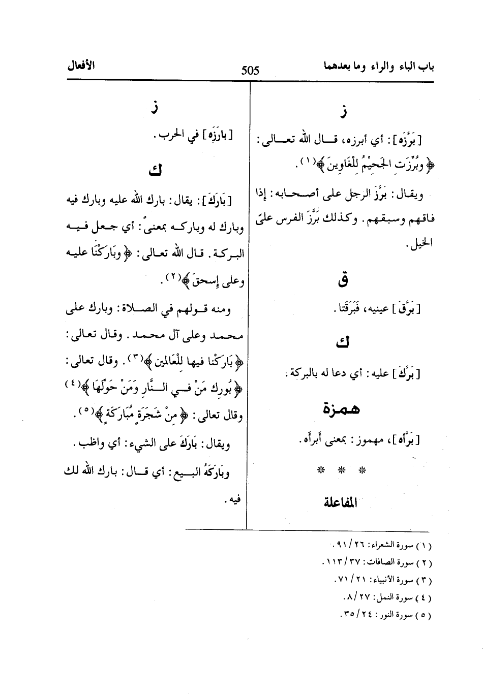 [بَارَكَ]: يقال: بارك اللّاه عليه وبارك فيه وبارك له وباركه بمعنىً: أي جعل فيه البركة. قال اللّاه تعالى: وَباارَكْناا عَلَيْهِ وَعَلى إِسْحااقَ «2».
