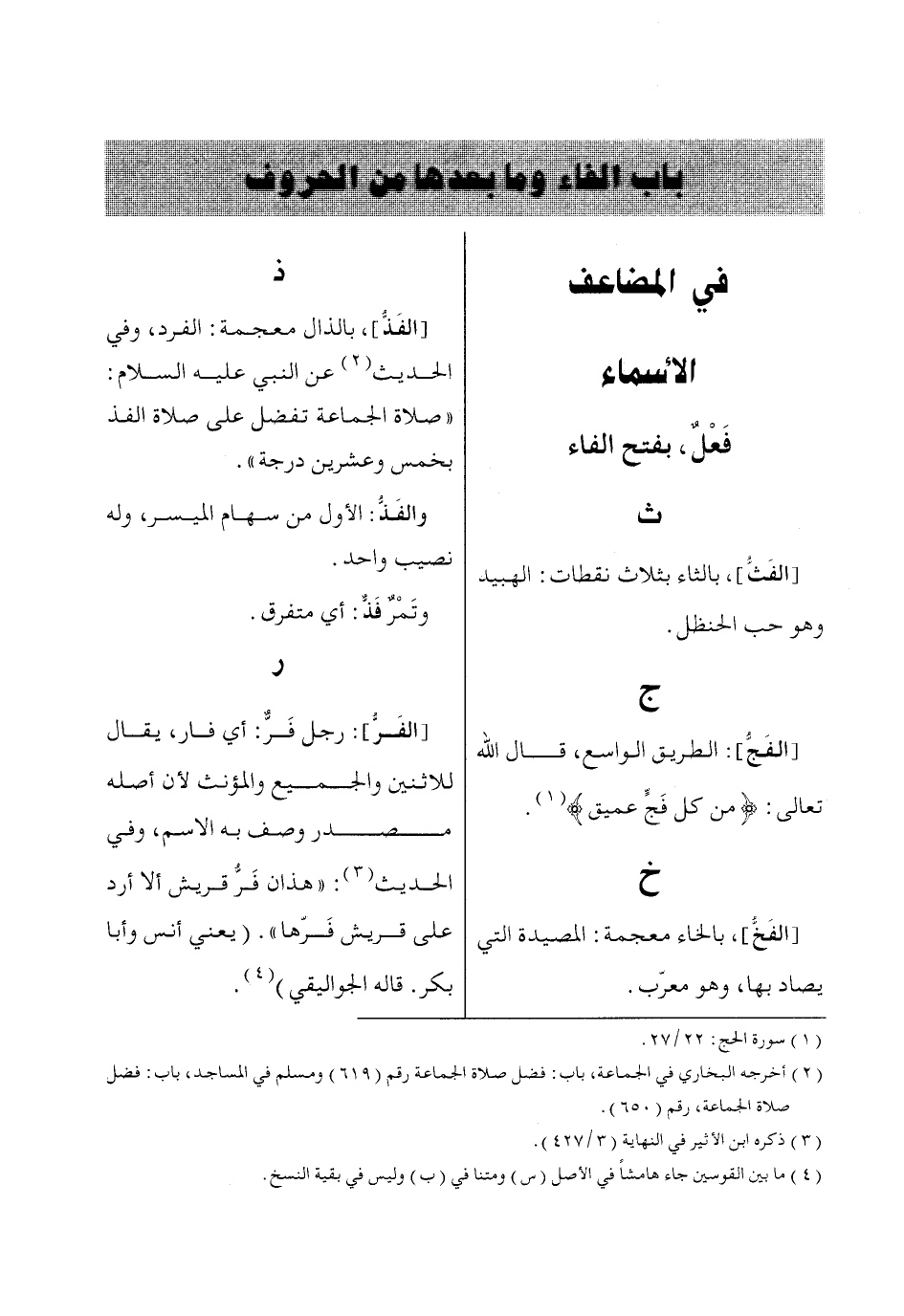 باب الفاء وما بعدها من الحروف [في المضاعف]