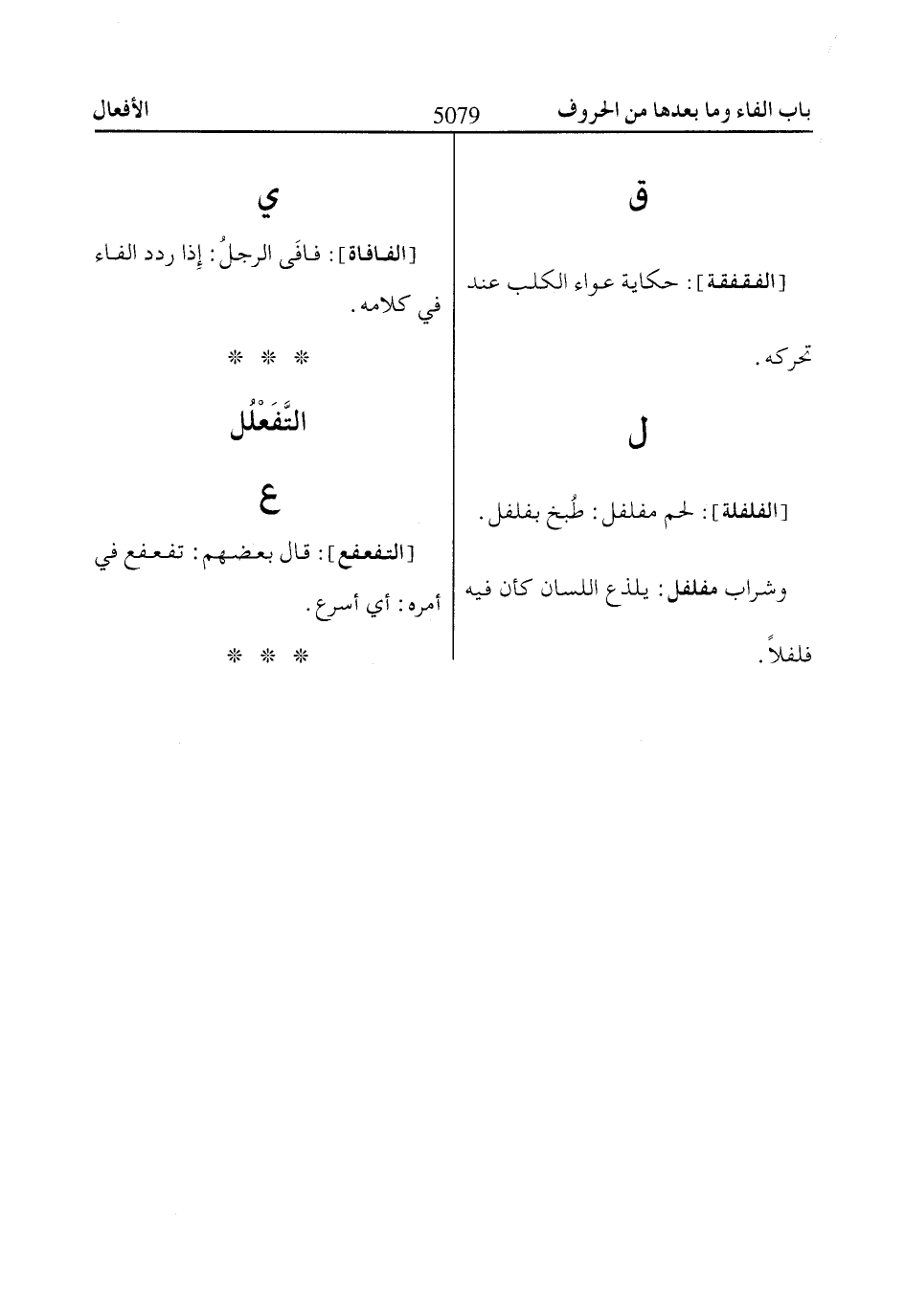 [الفافاة]: فافَى الرجلُ: إذا ردد الفاء في كلامه.