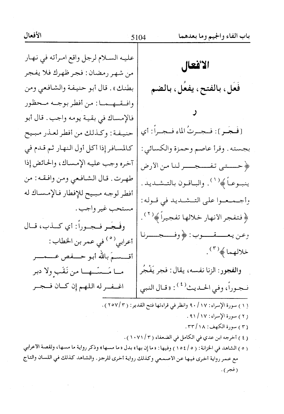 وذكر رواية ما مسها، ولقصة الأعرابي مع عمر رواية أخرى فيها عن الأصمعي وكذلك رواية أخرى للرجز. والشاهد كذلك في اللسان والتاج (فجر).