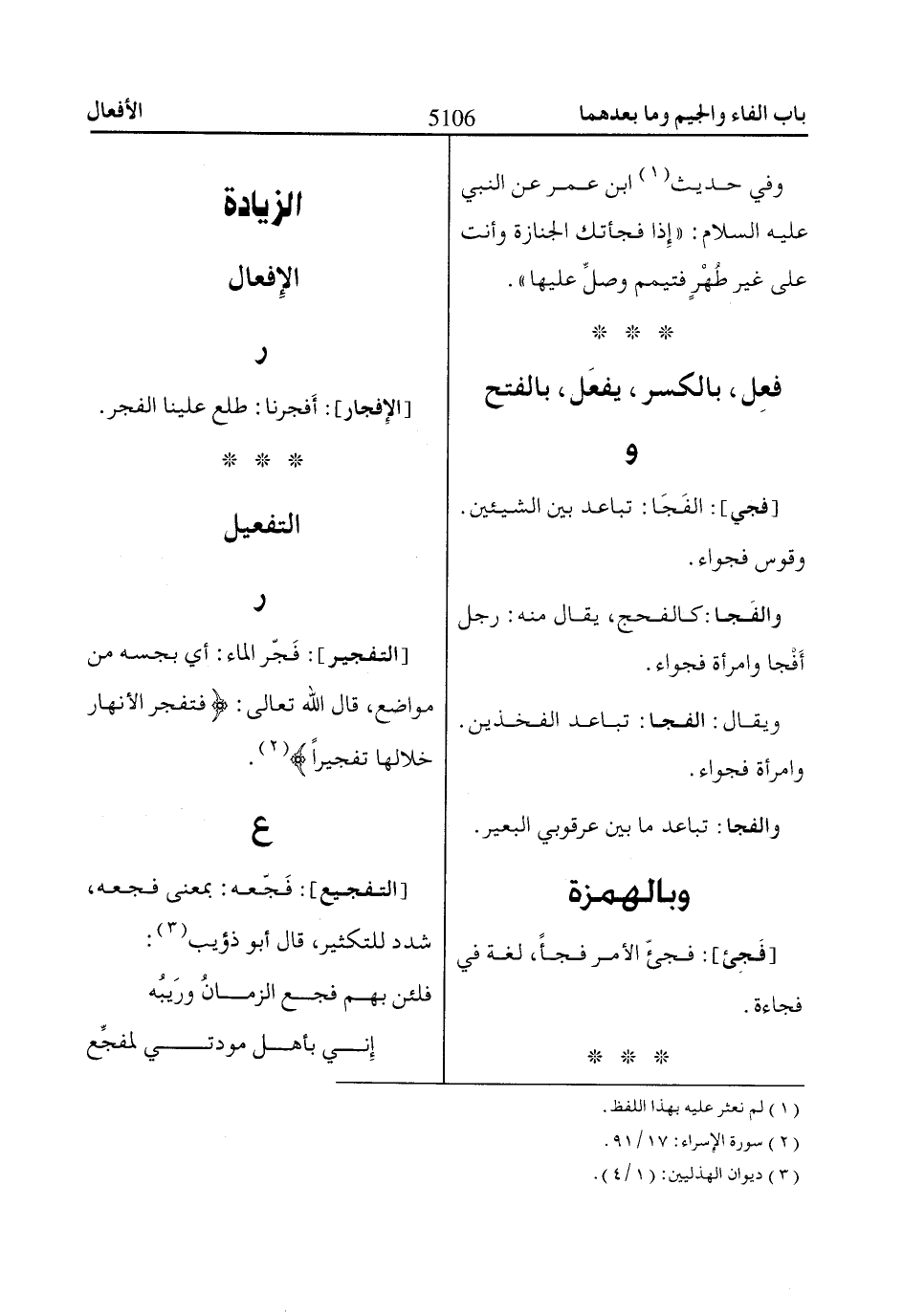 [التفجير]: فَجّر الماء: أي بجسه من مواضع، قال اللّاه تعالى: فَتُفَجِّرَ الْأَنْهاارَ خِلاالَهاا تَفْجِيراً «2».