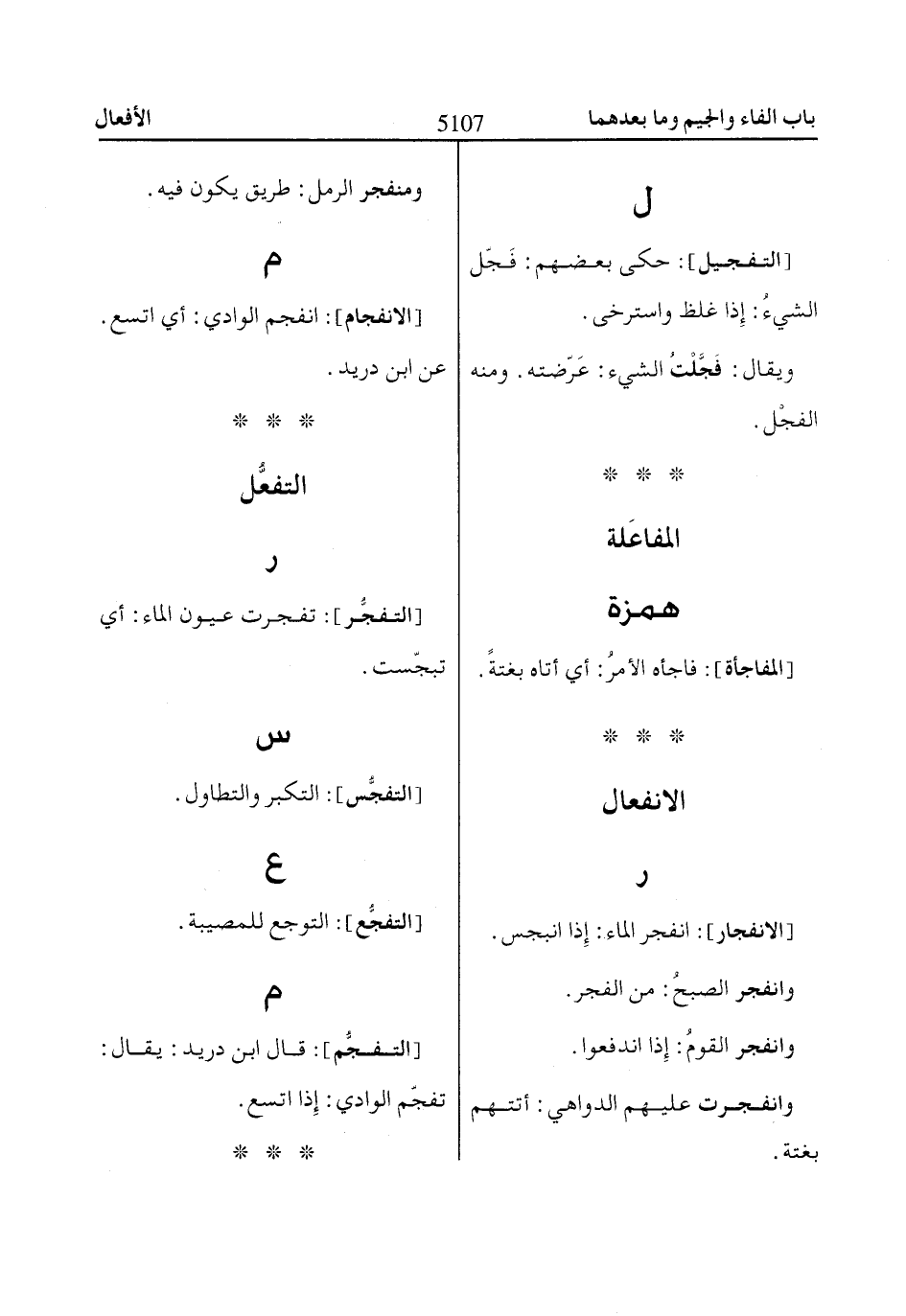 [الانفجام]: انفجم الوادي: أي اتسع.