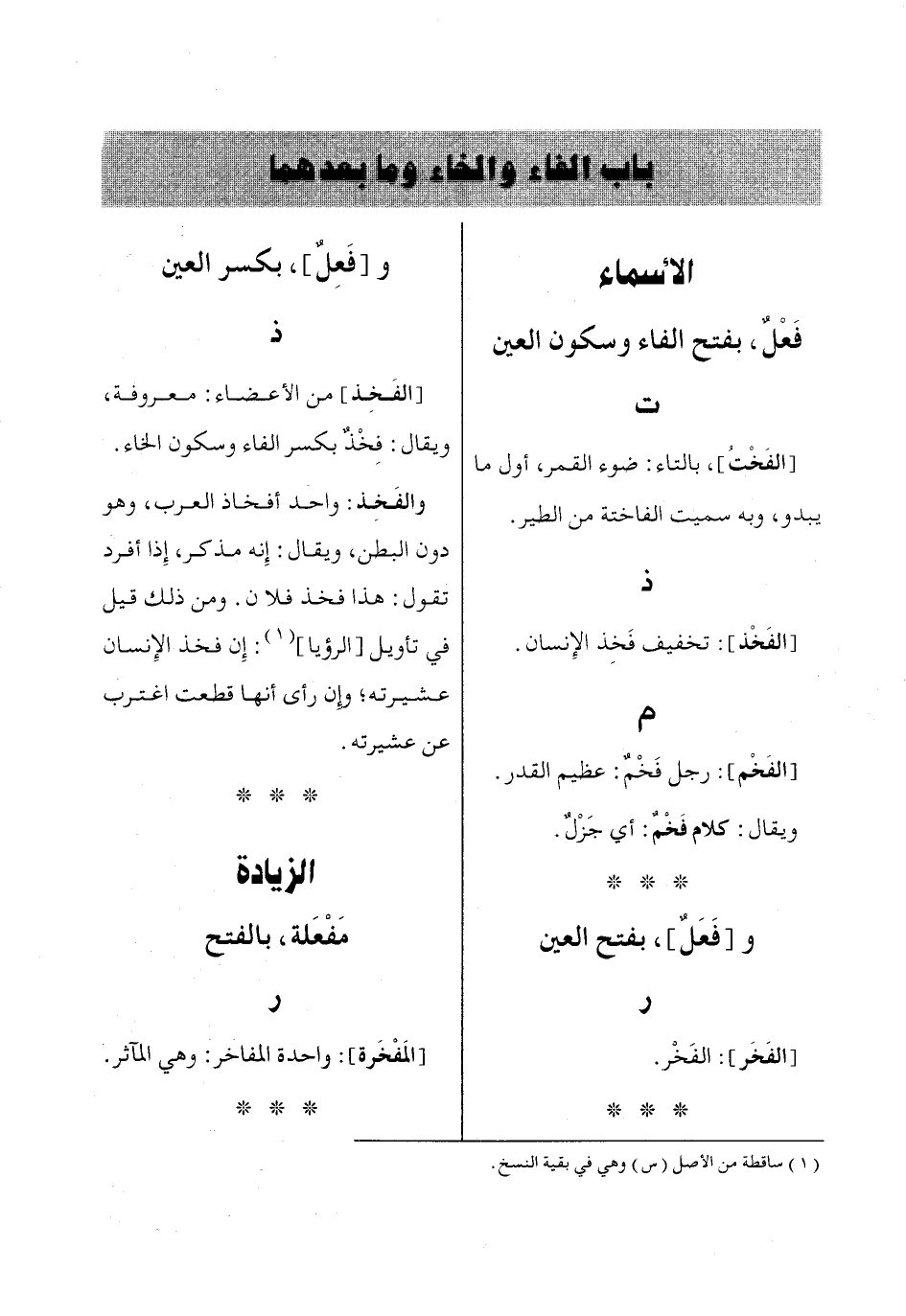 باب الفاء والخاء وما بعدهما
