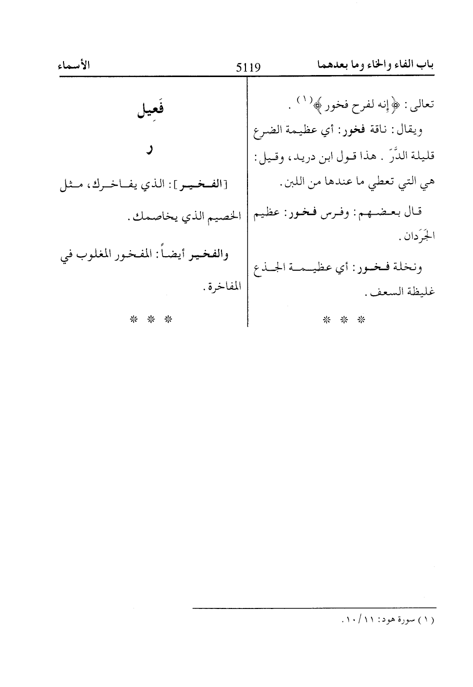 [الفخير]: الذي يفاخرك، مثل الخصيم الذي يخاصمك.
