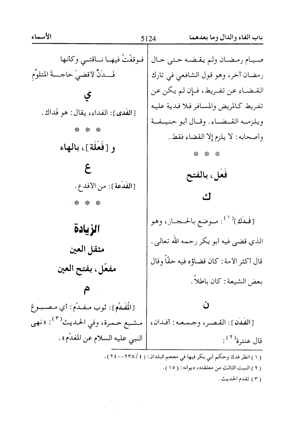 [الفَدَن]: القصر، وجمعه: أفدان، قال عنترة «2»: