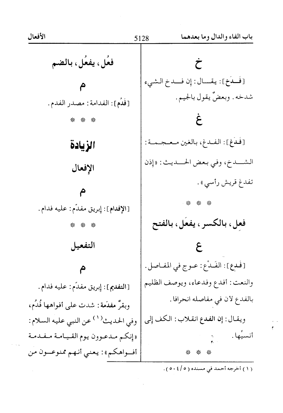 [فَدَغ]: الفدغ، بالغين معجمة: