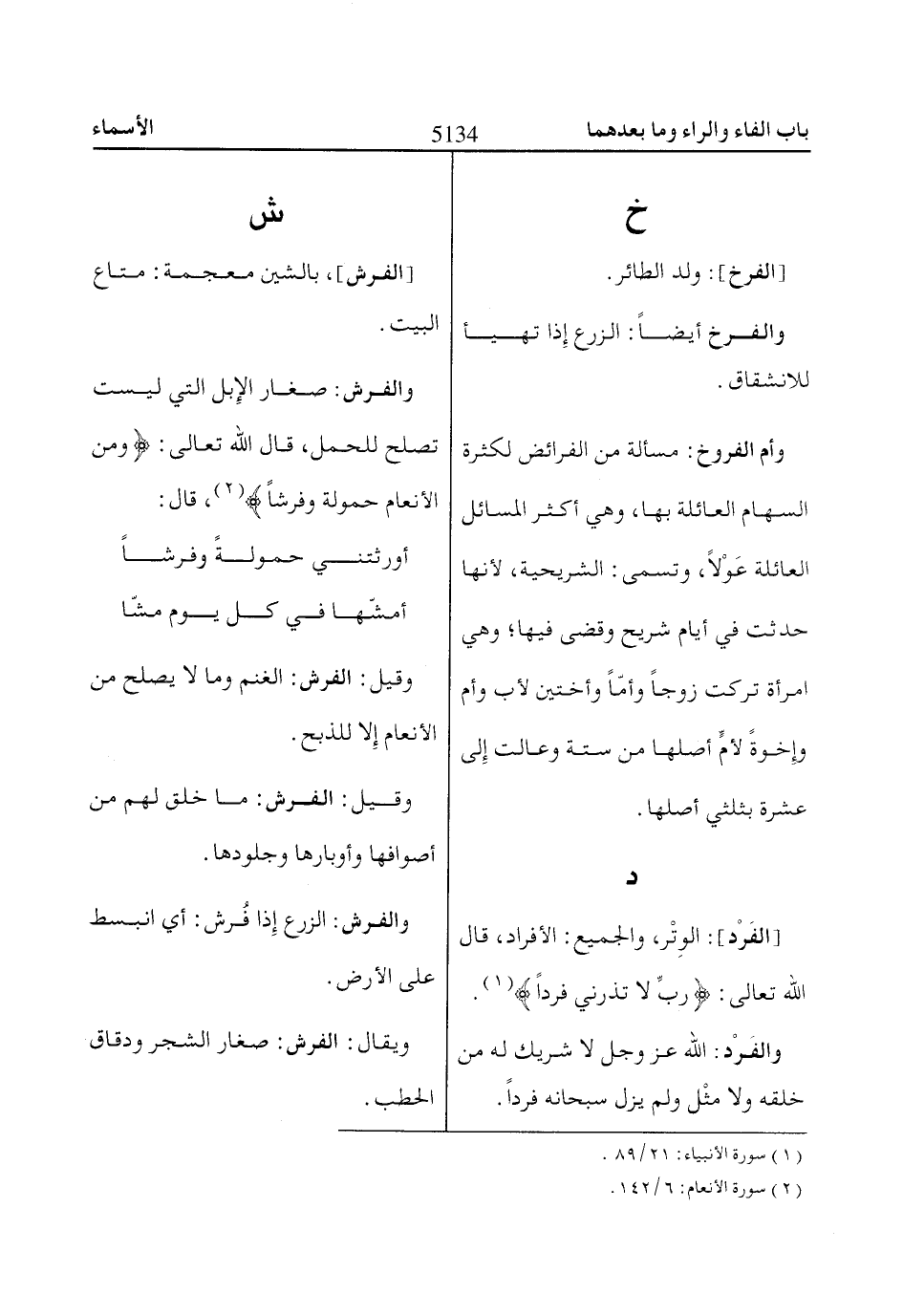 [الفَرْد]: الوِتْر، والجميع: الأفراد، قال اللّاه تعالى: رَبِّ لاا تَذَرْنِي فَرْداً «1».
