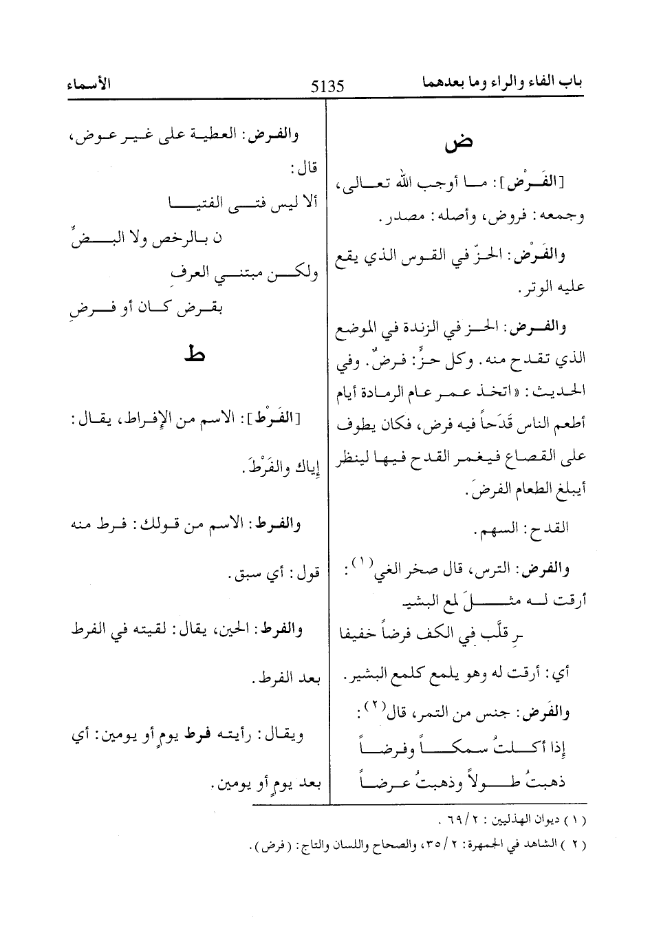 (2) الشاهد في الجمهرة: 2/ 35، والصحاح واللسان والتاج: (فرض).