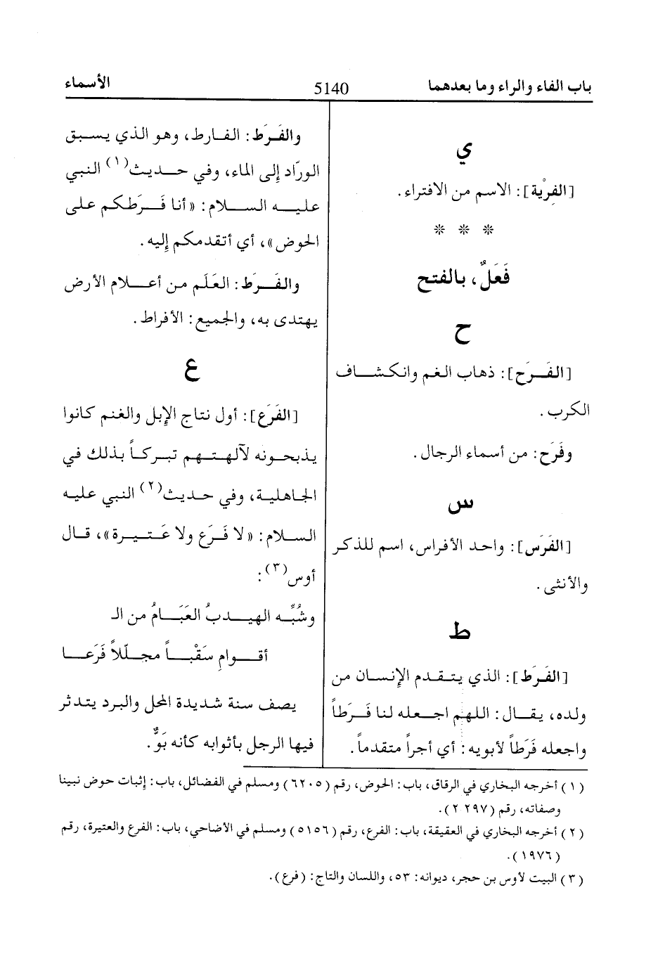 (3) البيت لأوس بن حجر، ديوانه: 53، واللسان والتاج: (فرع).
