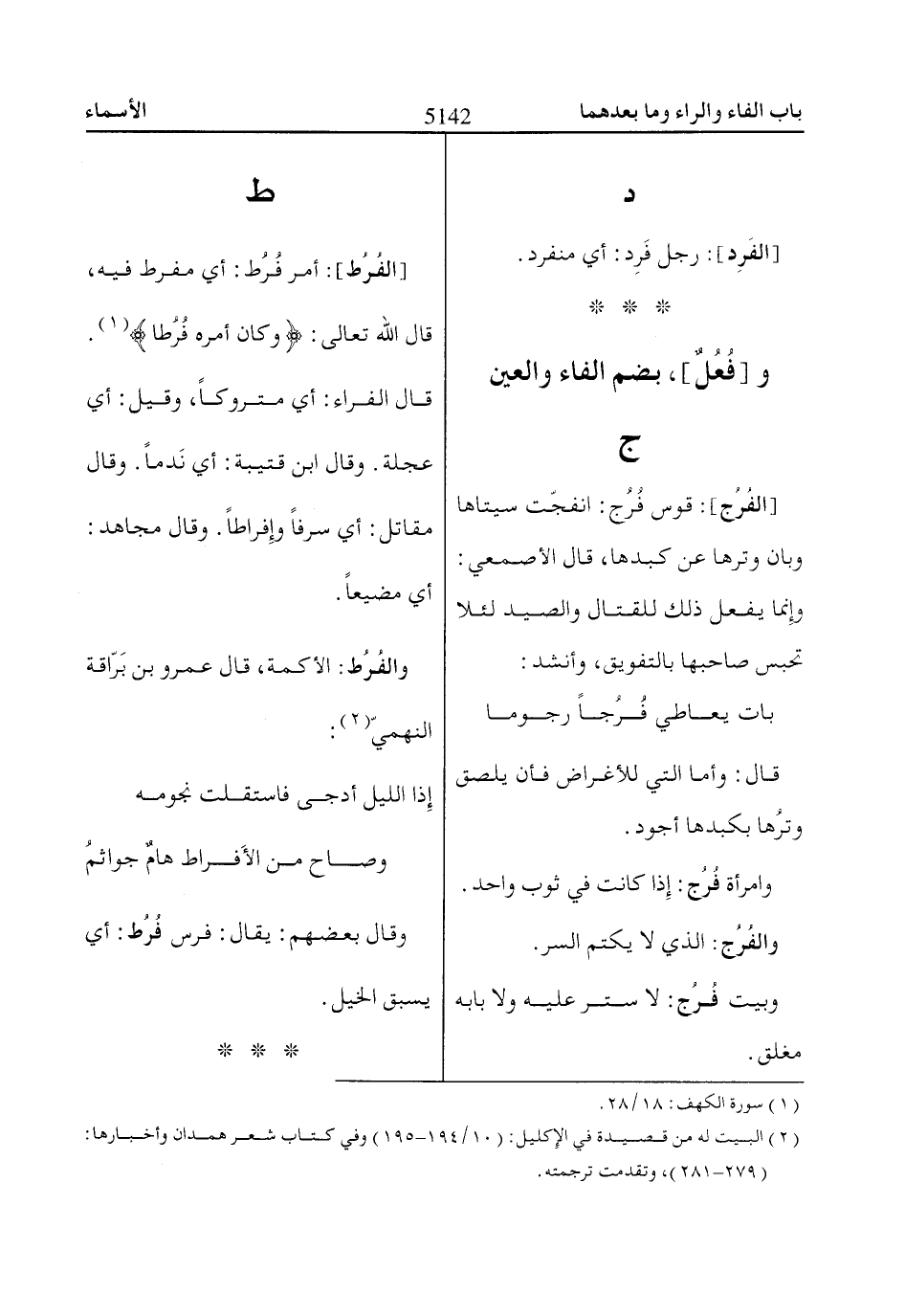 [الفُرُط]: أمر فُرُط: أي مفرط فيه، قال اللّاه تعالى: وَكاانَ أَمْرُهُ فُرُطاً «1».
