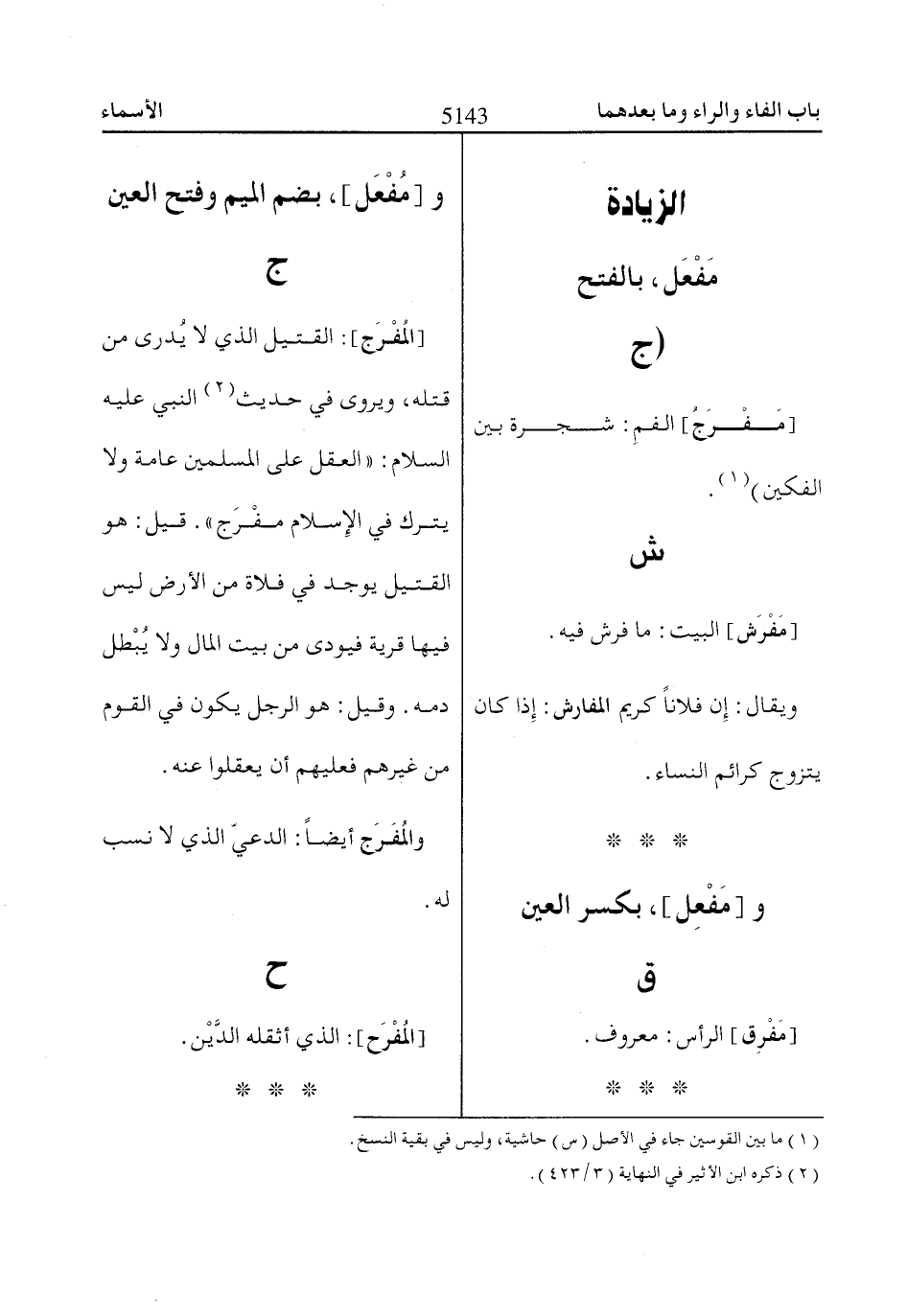 [المُفْرَج]: القتيل الذي لا يُدرى من قتله، ويروى