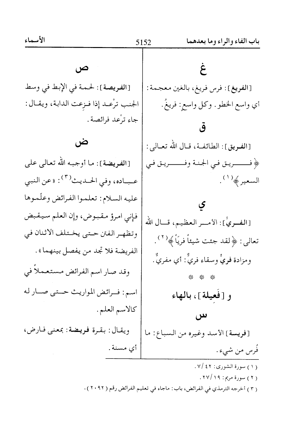 [الفريُّ]: الأمر العظيم، قال اللّاه تعالى: لَقَدْ جِئْتِ شَيْئاً فَرِيًّا «2».