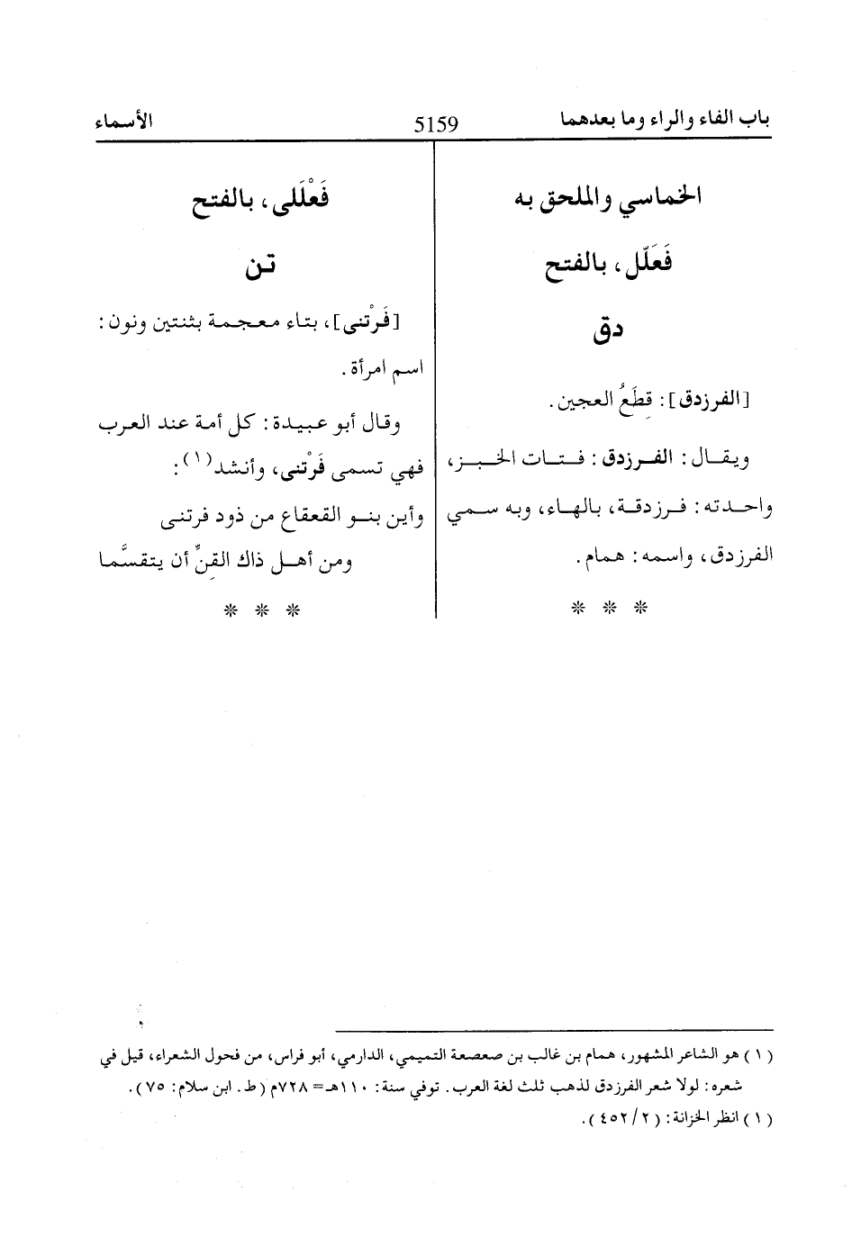 (1) هو الشاعر المشهور، همام بن غالب بن صعصعة التميمي، الدارمي، أبو فراس، من فحول الشعراء، قيل في شعره: لولا شعر الفرزدق لذهب ثلث لغة العرب. توفي سنة: 110 هـ728 م (ط. ابن سلام: 75).