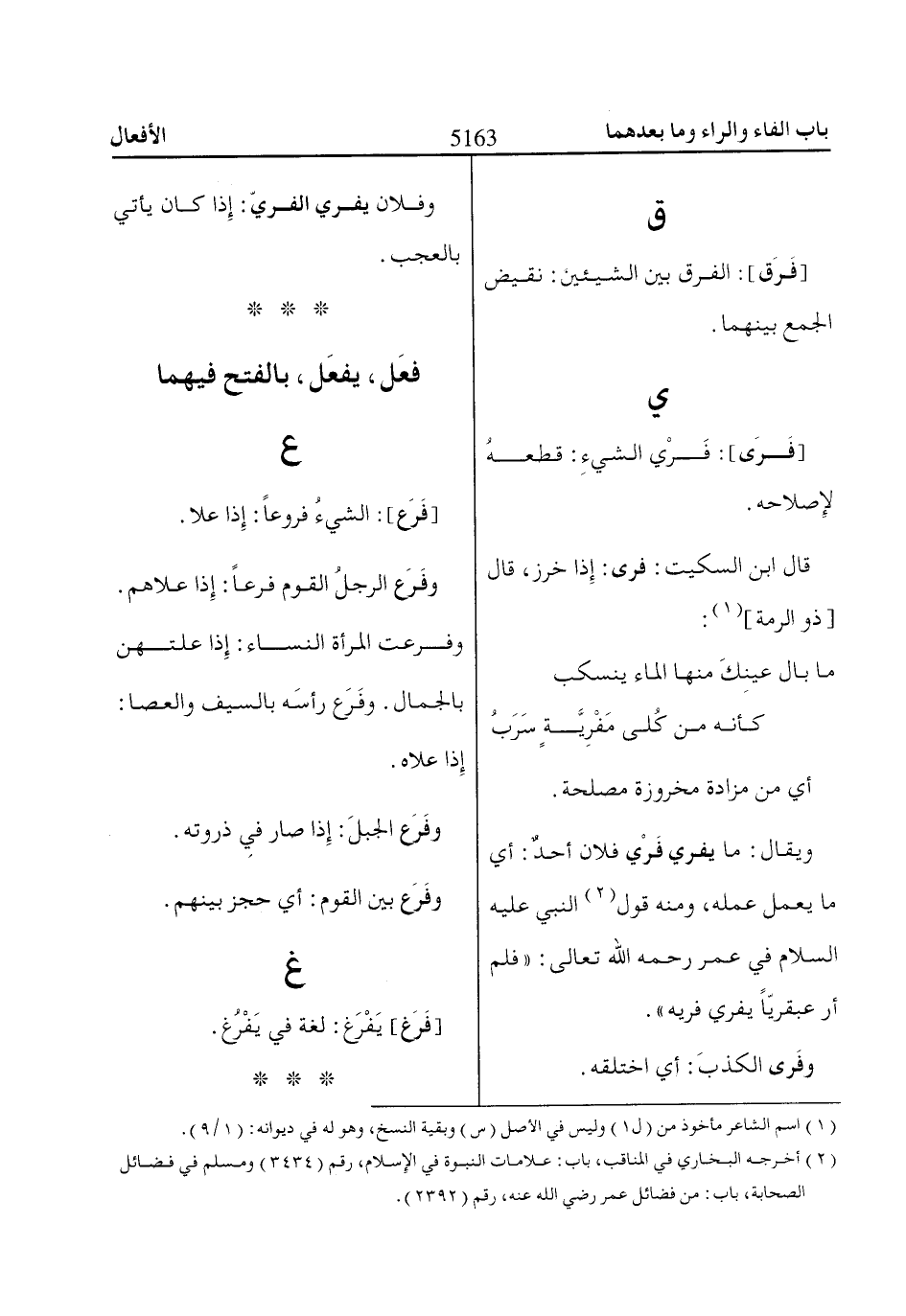 قال ابن السكيت: فرى: إذا خرز، قال [ذو الرمة] «1»:
