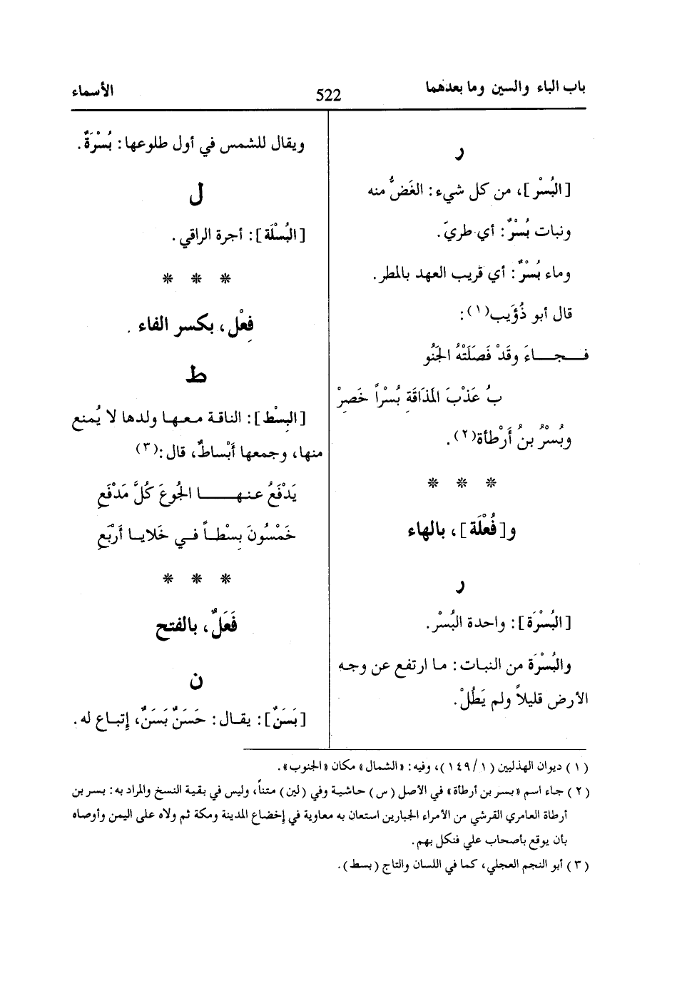 (2) جاء اسم «بسر بن أرطأة» في الأصل (س) حاشية وفي (لين) متناً، وليس في بقية النسخ والمراد به: بسر بن أرطاة العامري القرشي من الأمراء الجبارين استعان به معاوية في إِخضاع المدينة ومكة ثم ولاه على اليمن وأوصاه بأن يوقع بأصحاب علي فنكل بهم.