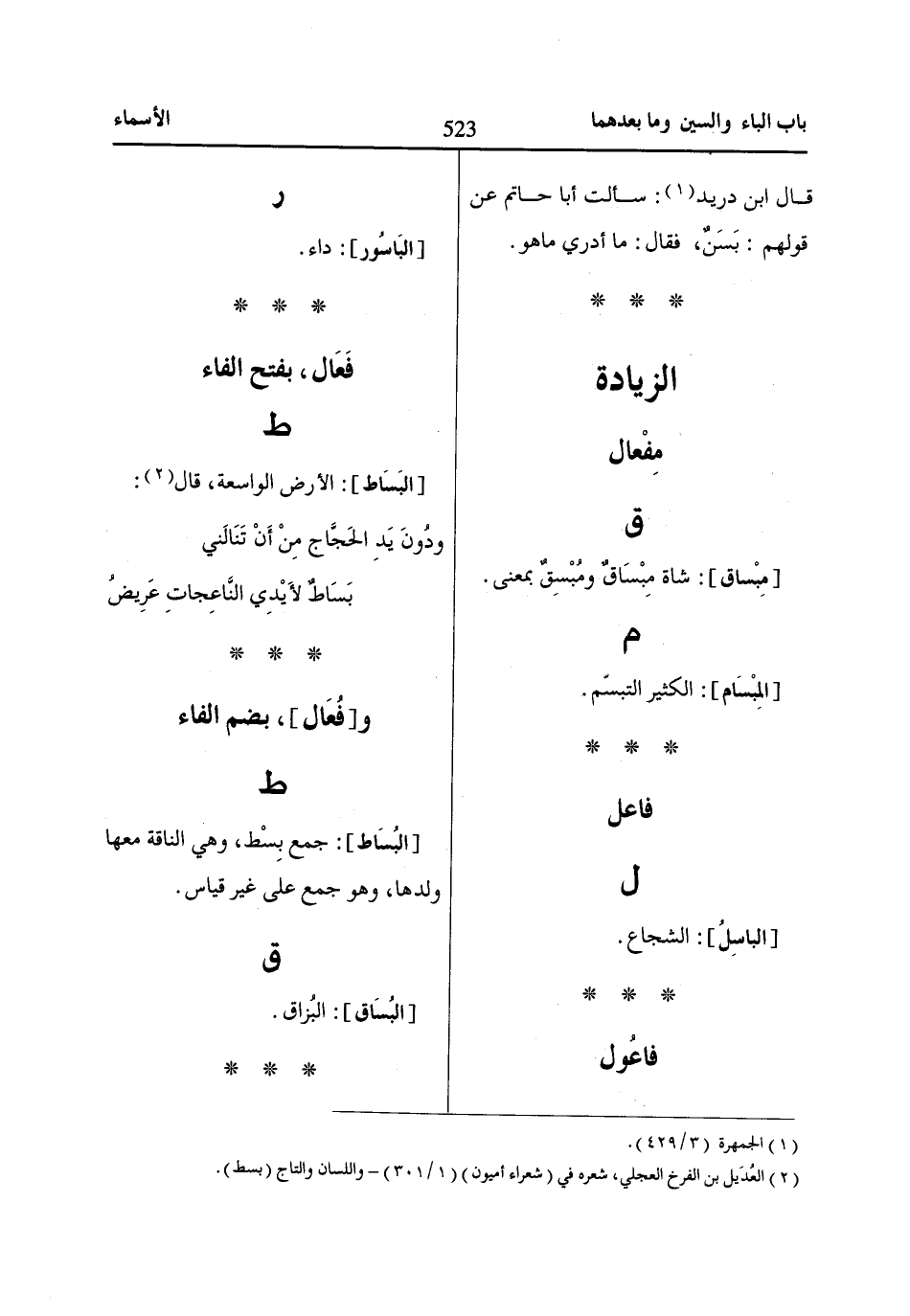[البُسَاط]: جمع بِسْط، وهي الناقة معها ولدها، وهو جمع على غير قياس.
