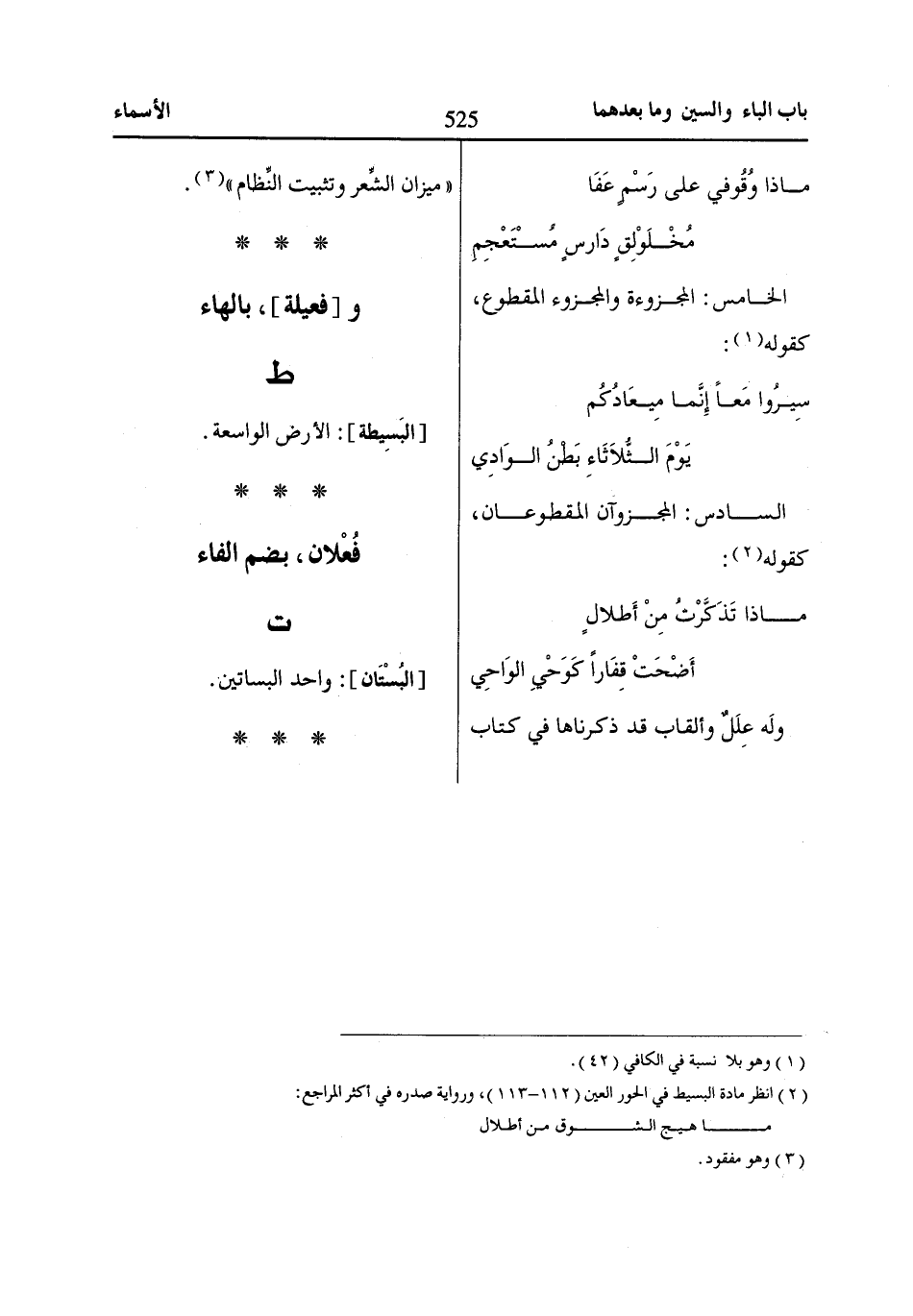 (2) انظر مادة البسيط في الحور العين (112 - 113)، ورواية صدره في أكثر المراجع: