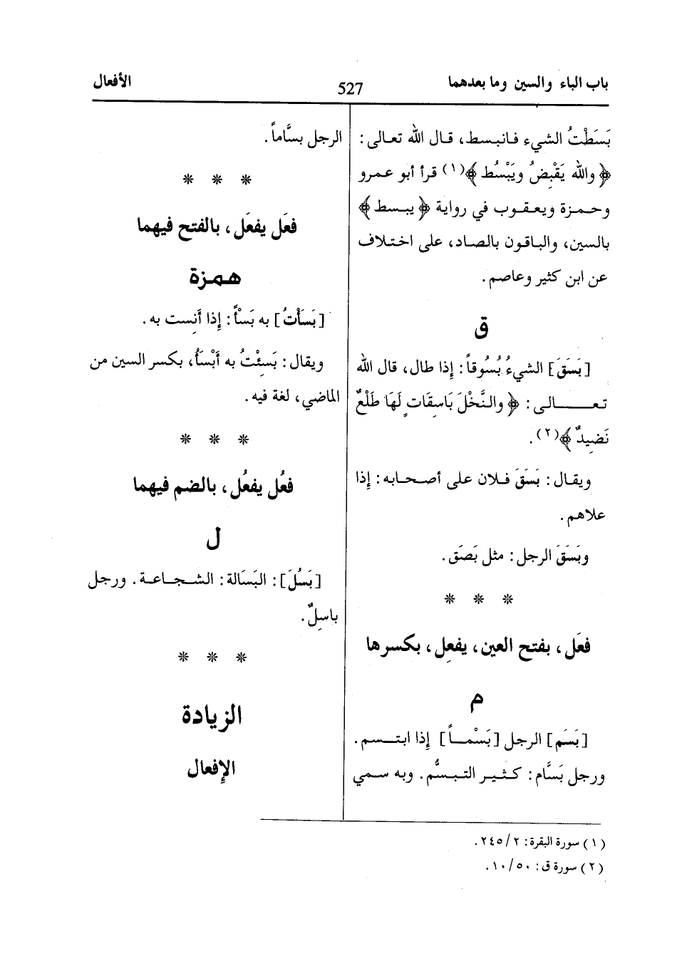 وَاللّاهُ يَقْبِضُ وَيَبْصُطُ «1» قرأ أبو عمرو وحمزة ويعقوب في رواية يبسط بالسين، والباقون بالصاد، على اختلاف عن ابن كثير وعاصم.