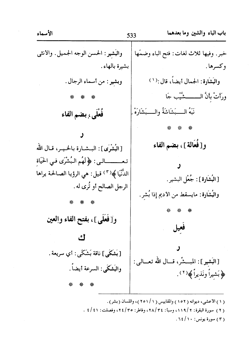 (1) الأعشى، ديوانه (152) والمقاييس (1/ 251)، واللسان (بشر).