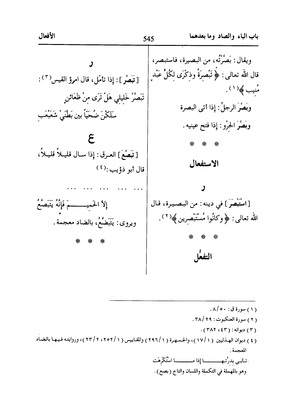 [تَبَصَّر]: إِذا تأمّل، قال امرؤ القيس «3»: