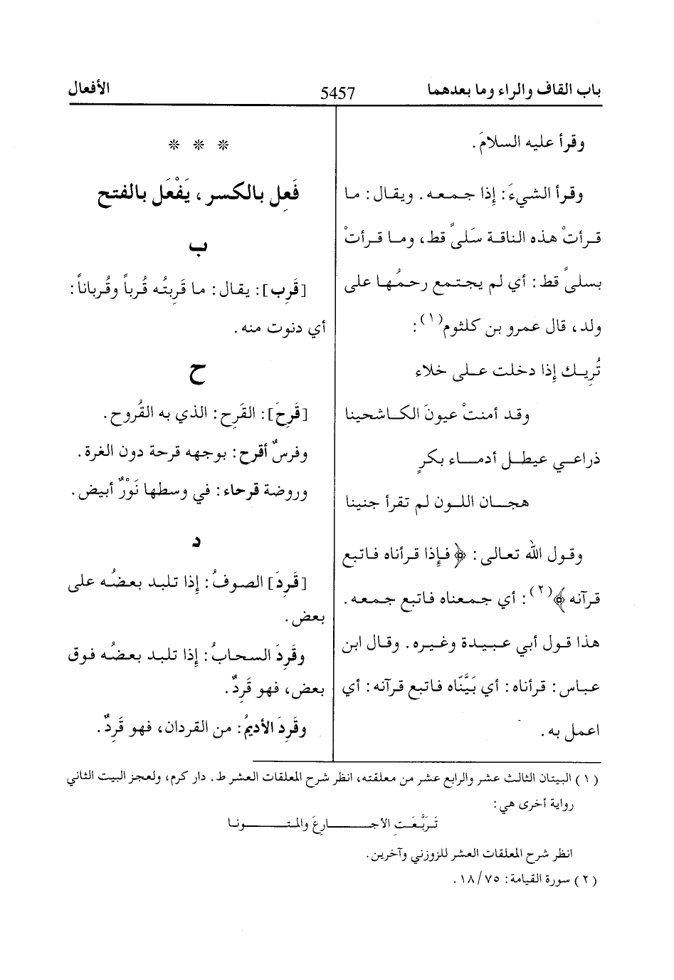 (2) سورة القيامة: 75/ 18.