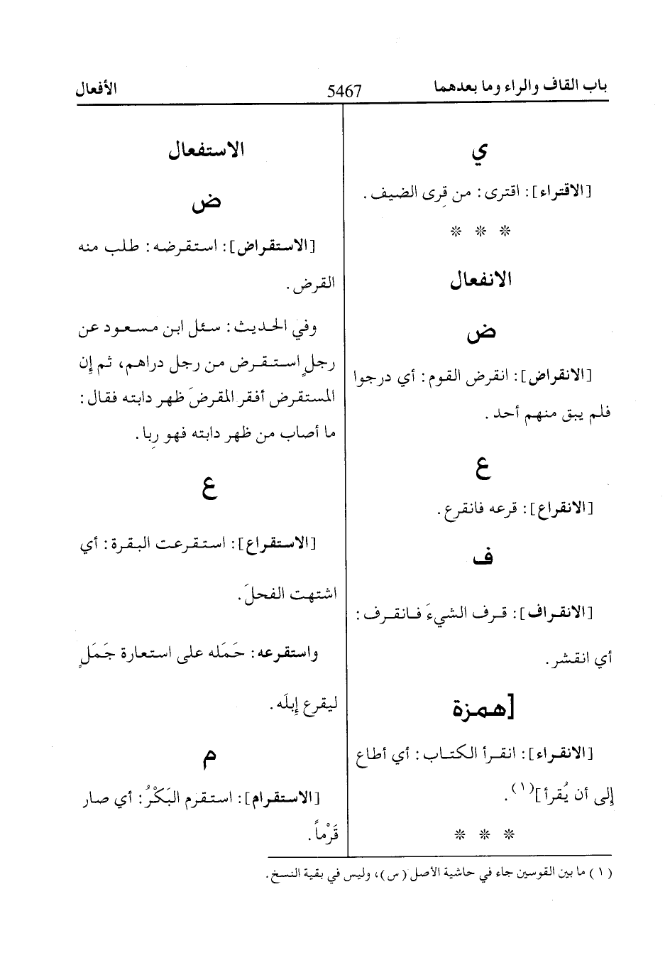 [الانقراء]: انقرأ الكتاب: أي أطاع إلى أن يُقرأ] «1».