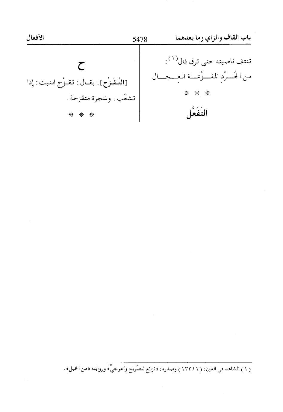 (1) الشاهد في العين: (1/ 133) وصدره: