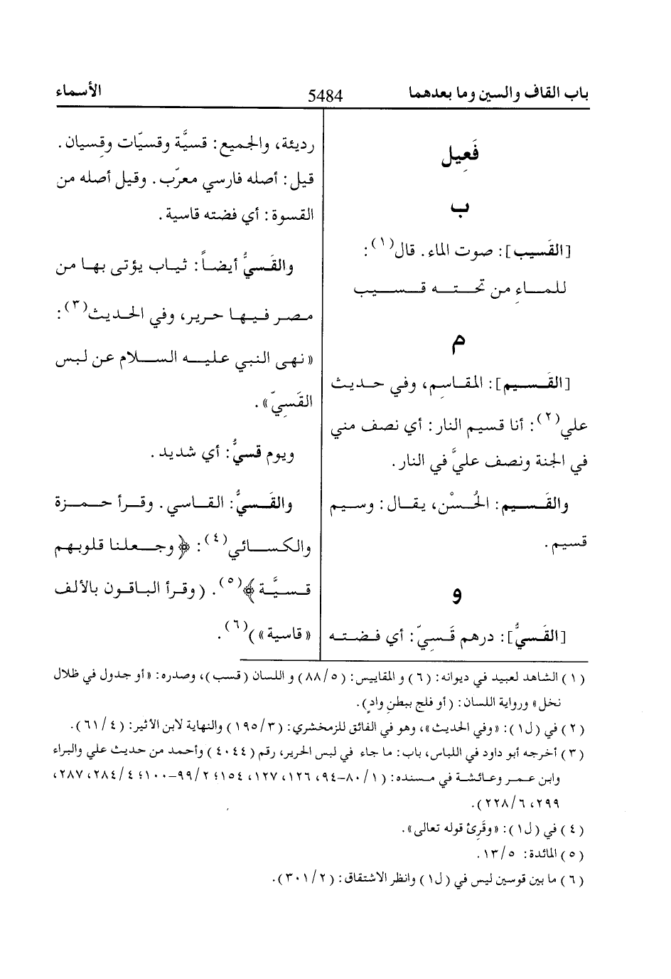 (1) الشاهد لعبيد في ديوانه: (6) والمقاييس: (5/ 88) واللسان (قسب)، وصدره: