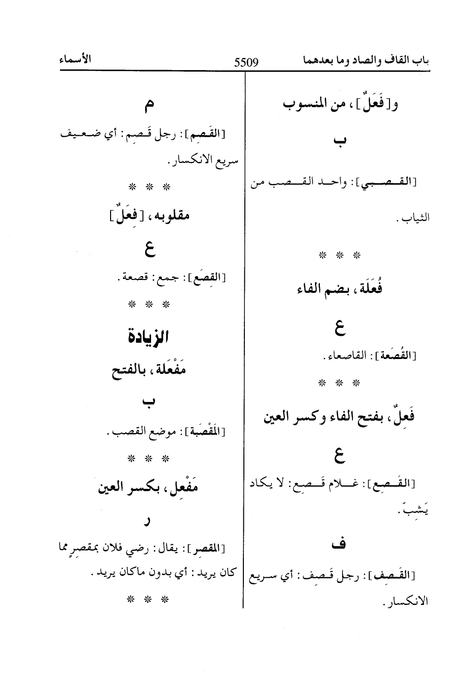 [القَصِم]: رجل قَصِم: أي ضعيف سريع الانكسار.