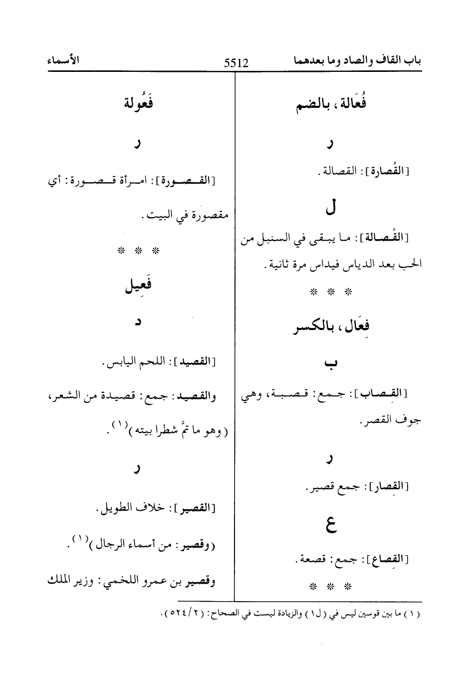 (1) ما بين قوسين ليس في (ل 1) والزيادة ليست في الصحاح: (2/ 524).