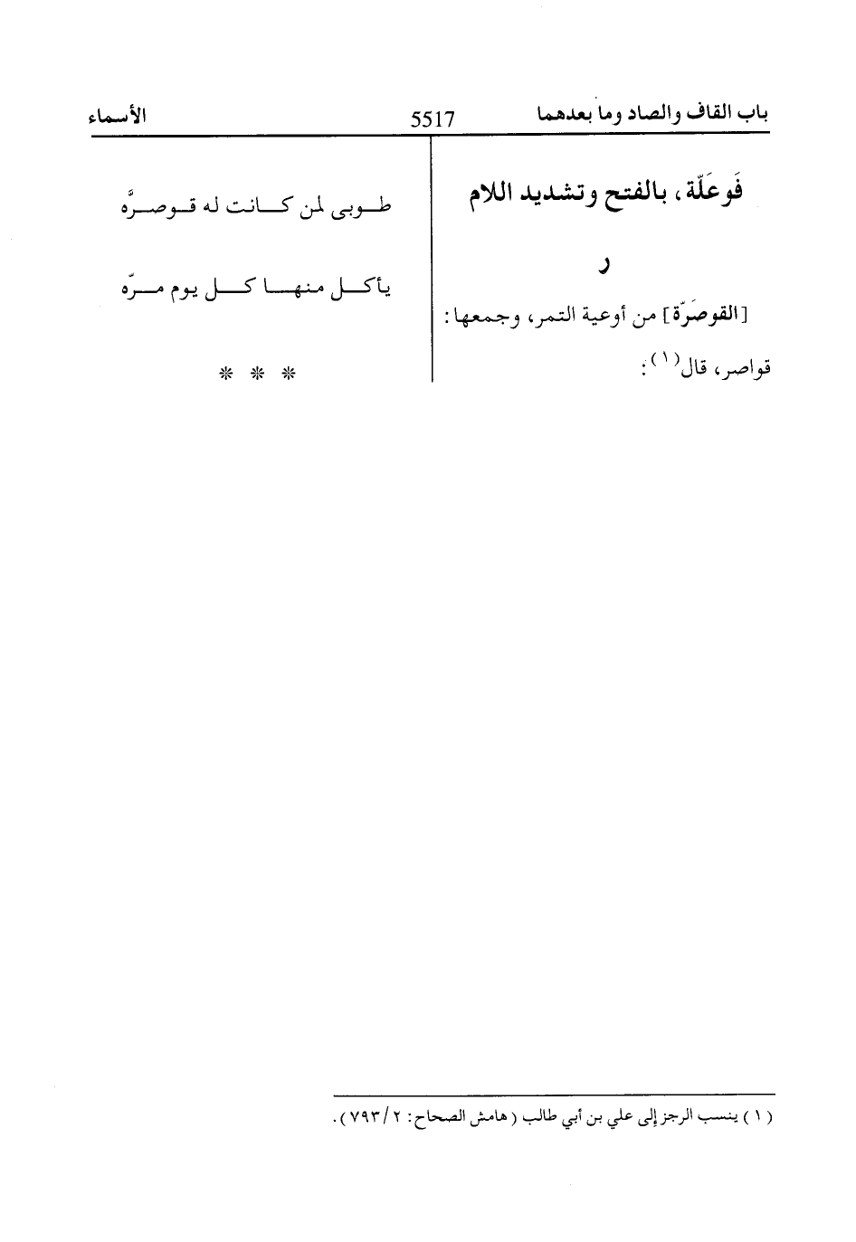 (1) ينسب الرجز إلى علي بن أبي طالب (هامش الصحاح: 2/ 793).