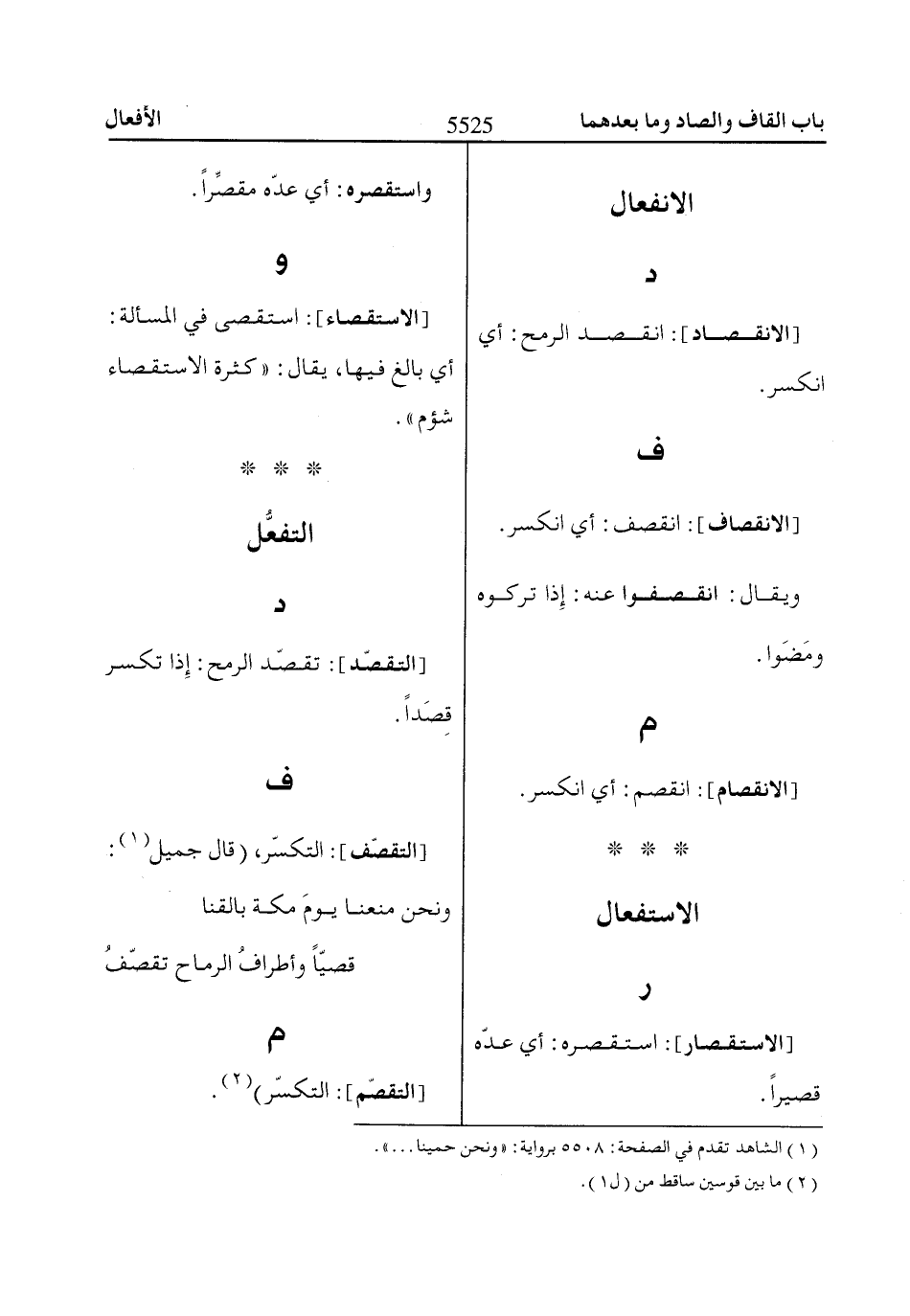 [التقصّف]: التكسّر، (قال جميل «1»: