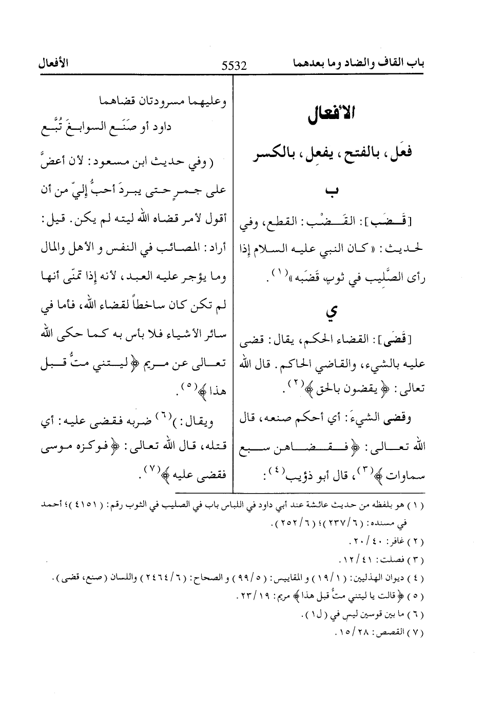 (4) ديوان الهذليين: (1/ 19) والمقاييس: (5/ 99) والصحاح: (6/ 2464) واللسان (صنع، قضى).