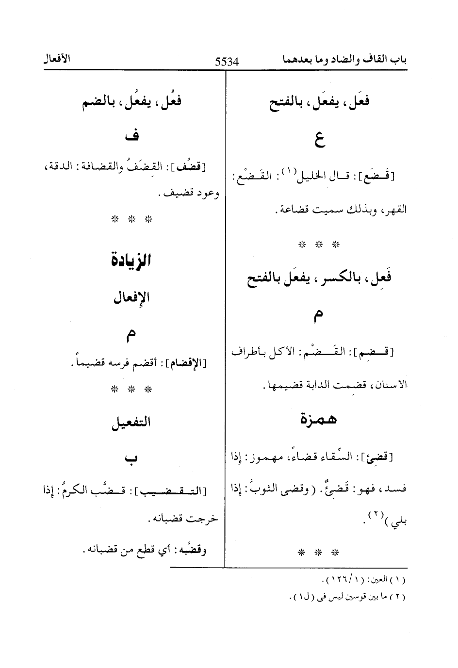 [قضِم]: القَضْم: الأكل بأطراف الأسنان، قضِمت الدابة قضيمها.