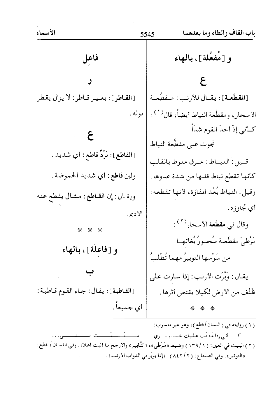 والأرجح ما أثبت أعلاه. وفي اللسان/ قطع: