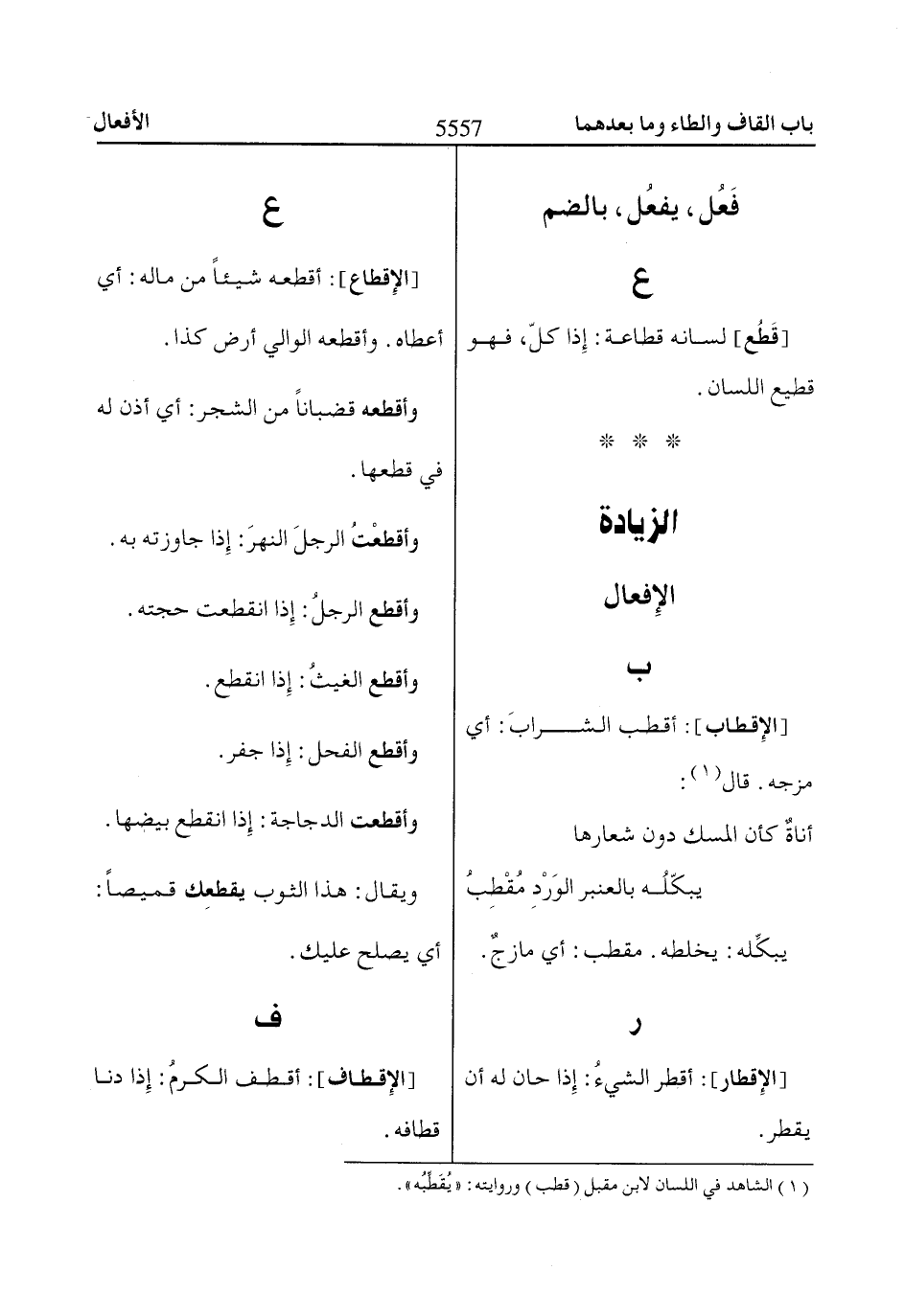 [قَطُع] لسانه قطاعة: إذا كلّ، فهو قطيع اللسان.
